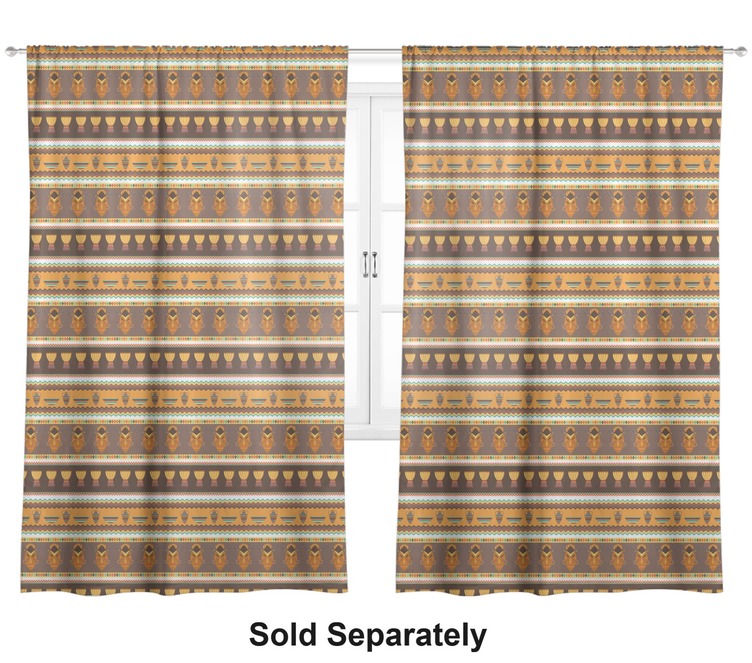 Traditional meets trendy in this fun, tribal design. This African Masks design depicts traditional tribal masks, vases, and bowls all in gorgeous warm colors.