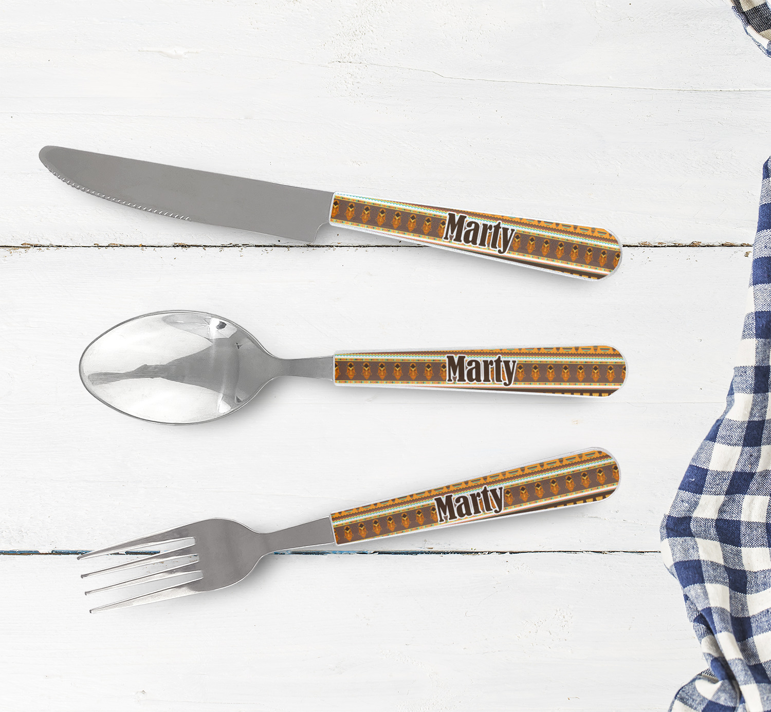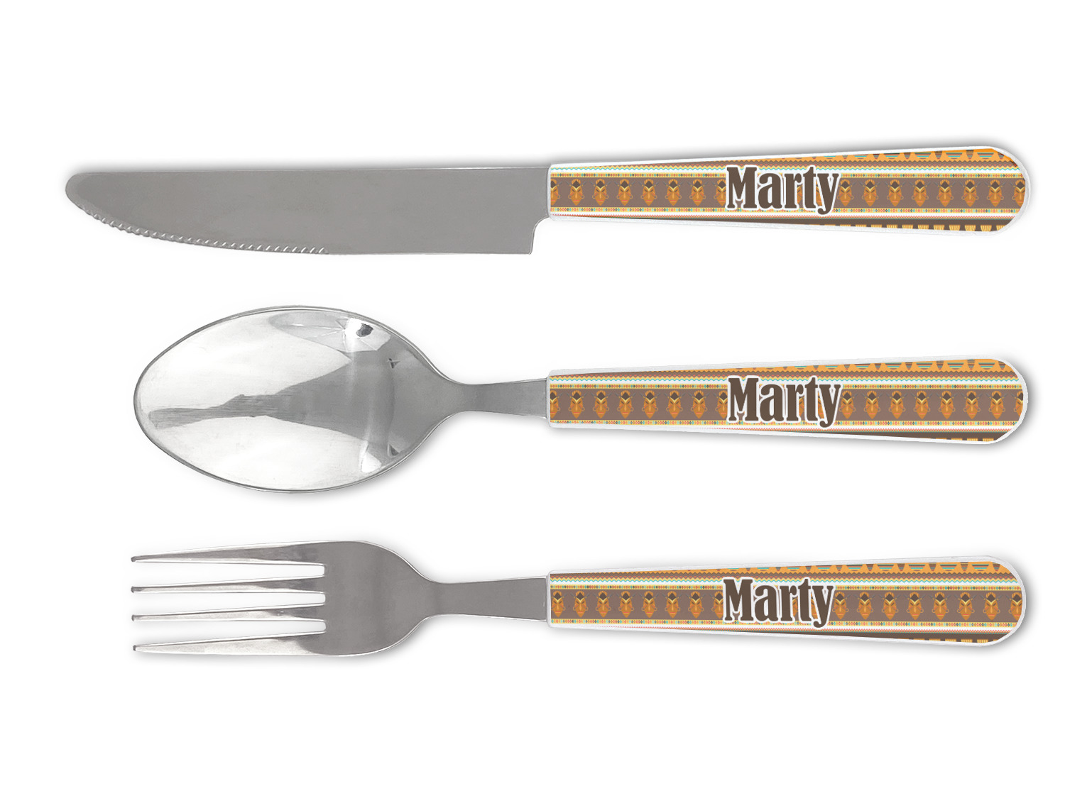 One of those items we all use on a daily basis and never give it much thought - cutlery. Having your own customized set of cutlery adds that special touch. A great addition to our custom plates and drinking pint glasses, this flatware set can be made in the same patterns to match.