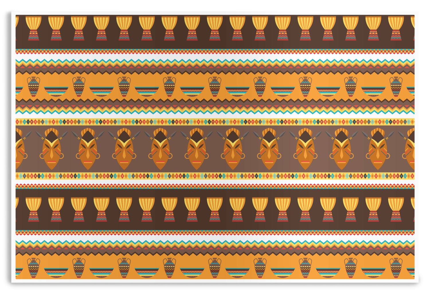 Traditional meets trendy in this fun, tribal design. This African Masks design depicts traditional tribal masks, vases, and bowls all in gorgeous warm colors.
