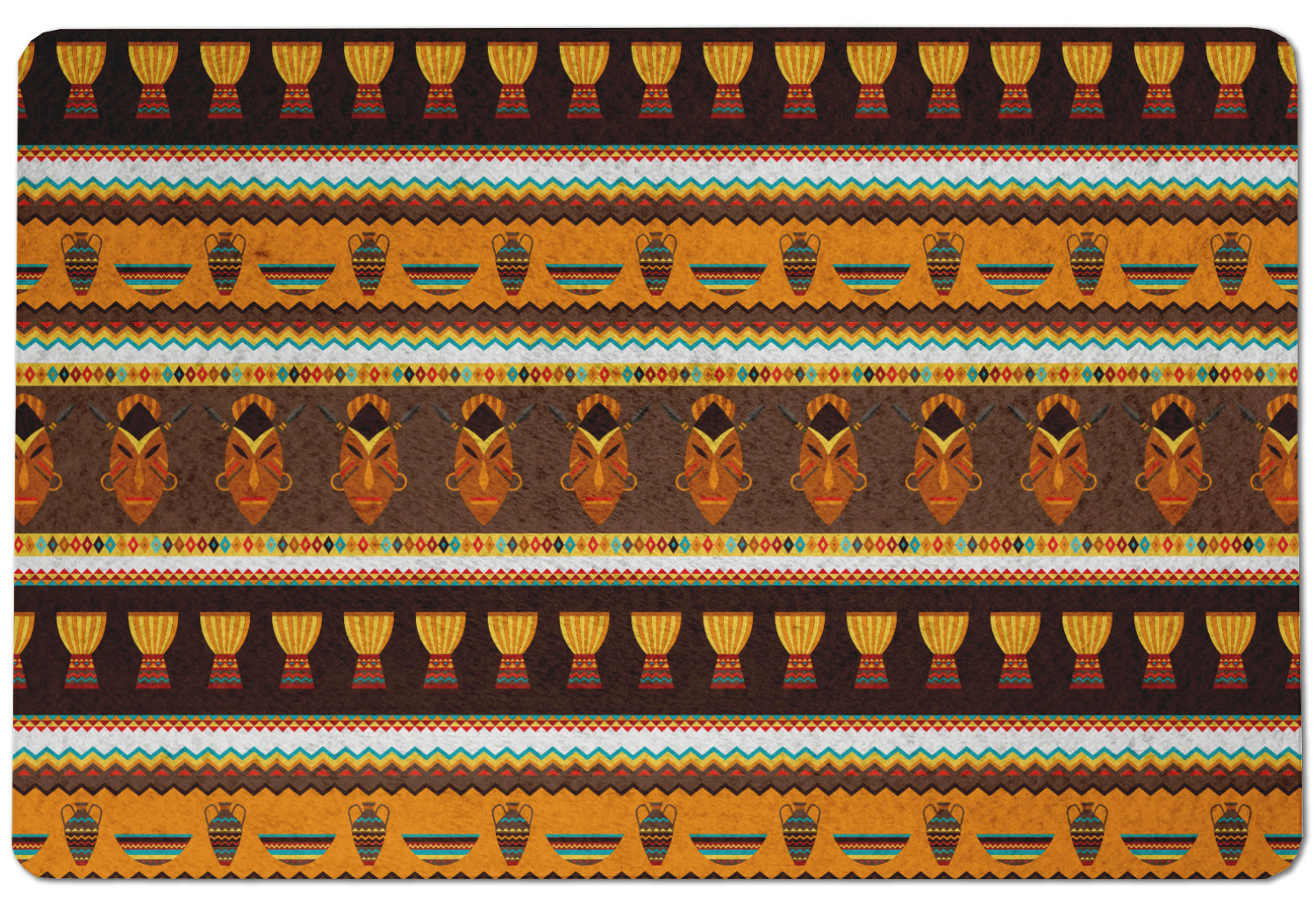 Traditional meets trendy in this fun, tribal design. This African Masks design depicts traditional tribal masks, vases, and bowls all in gorgeous warm colors.