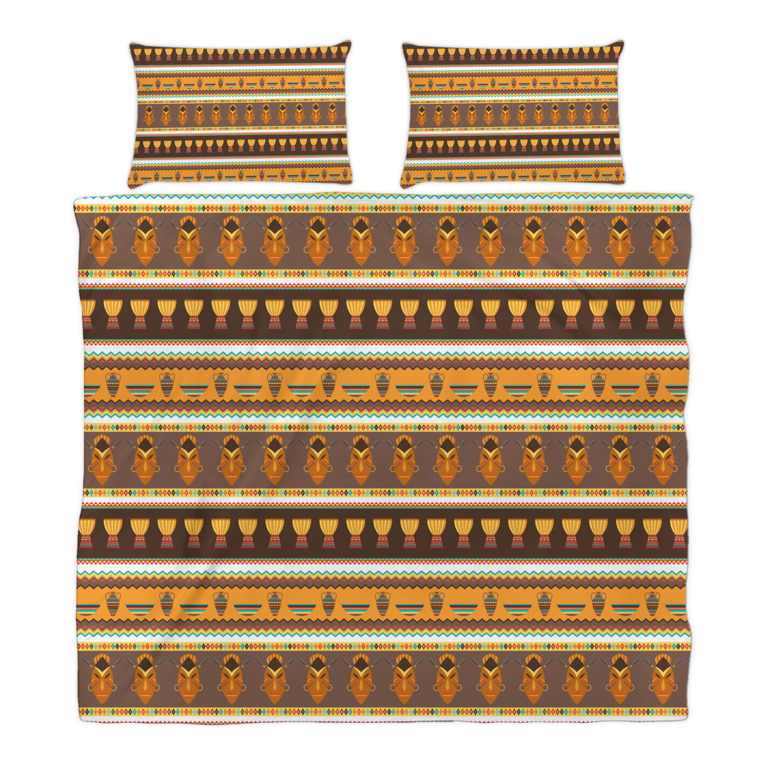 Traditional meets trendy in this fun, tribal design. This African Masks design depicts traditional tribal masks, vases, and bowls all in gorgeous warm colors.