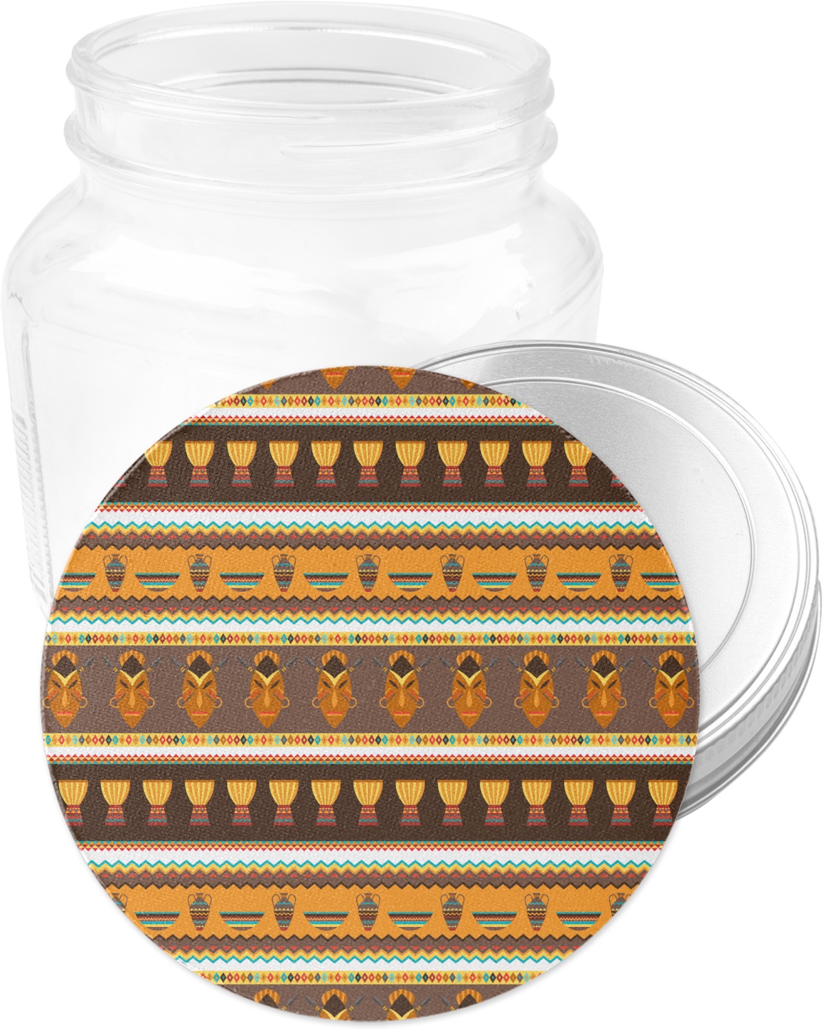 Traditional meets trendy in this fun, tribal design. This African Masks design depicts traditional tribal masks, vases, and bowls all in gorgeous warm colors.