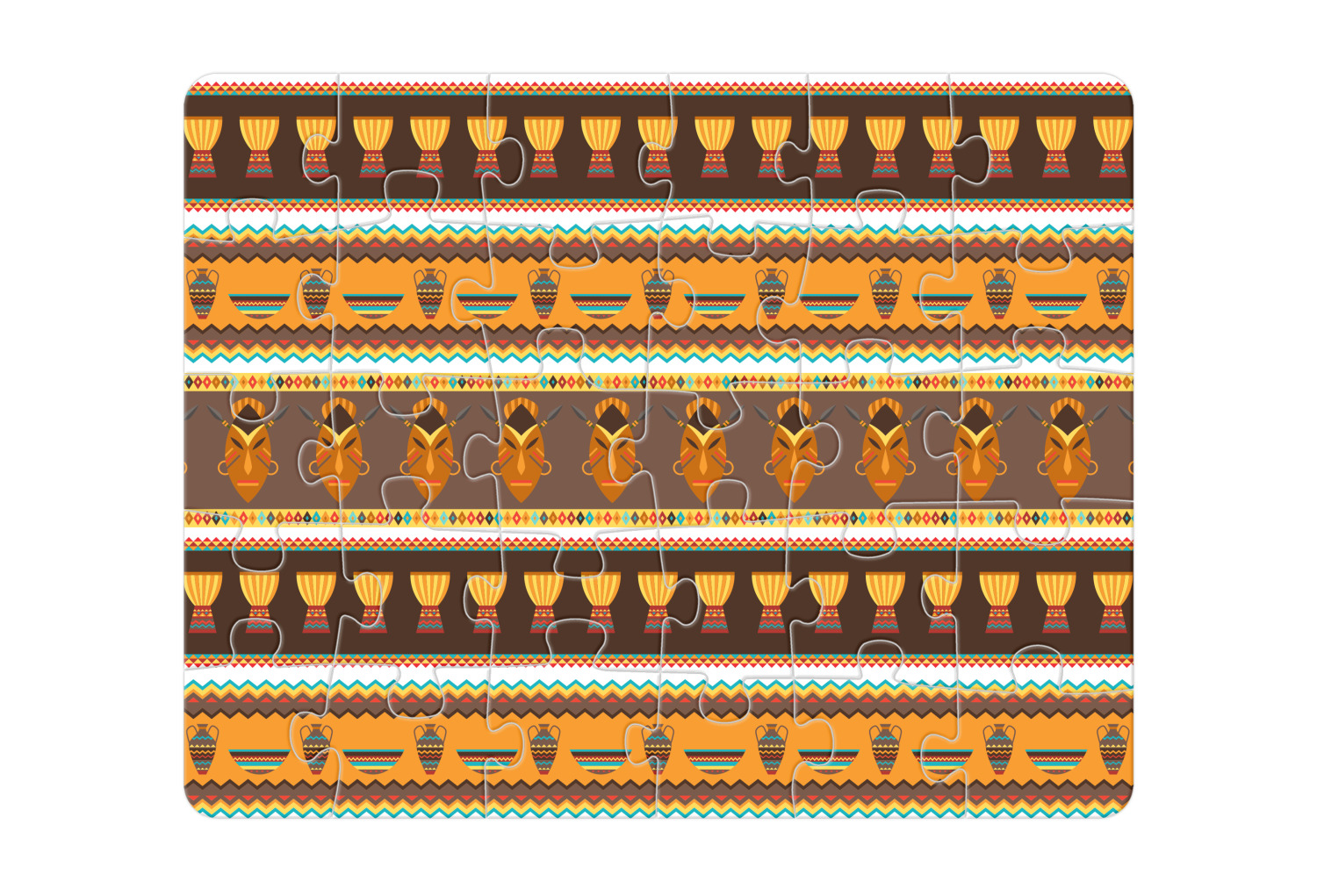 Traditional meets trendy in this fun, tribal design. This African Masks design depicts traditional tribal masks, vases, and bowls all in gorgeous warm colors.