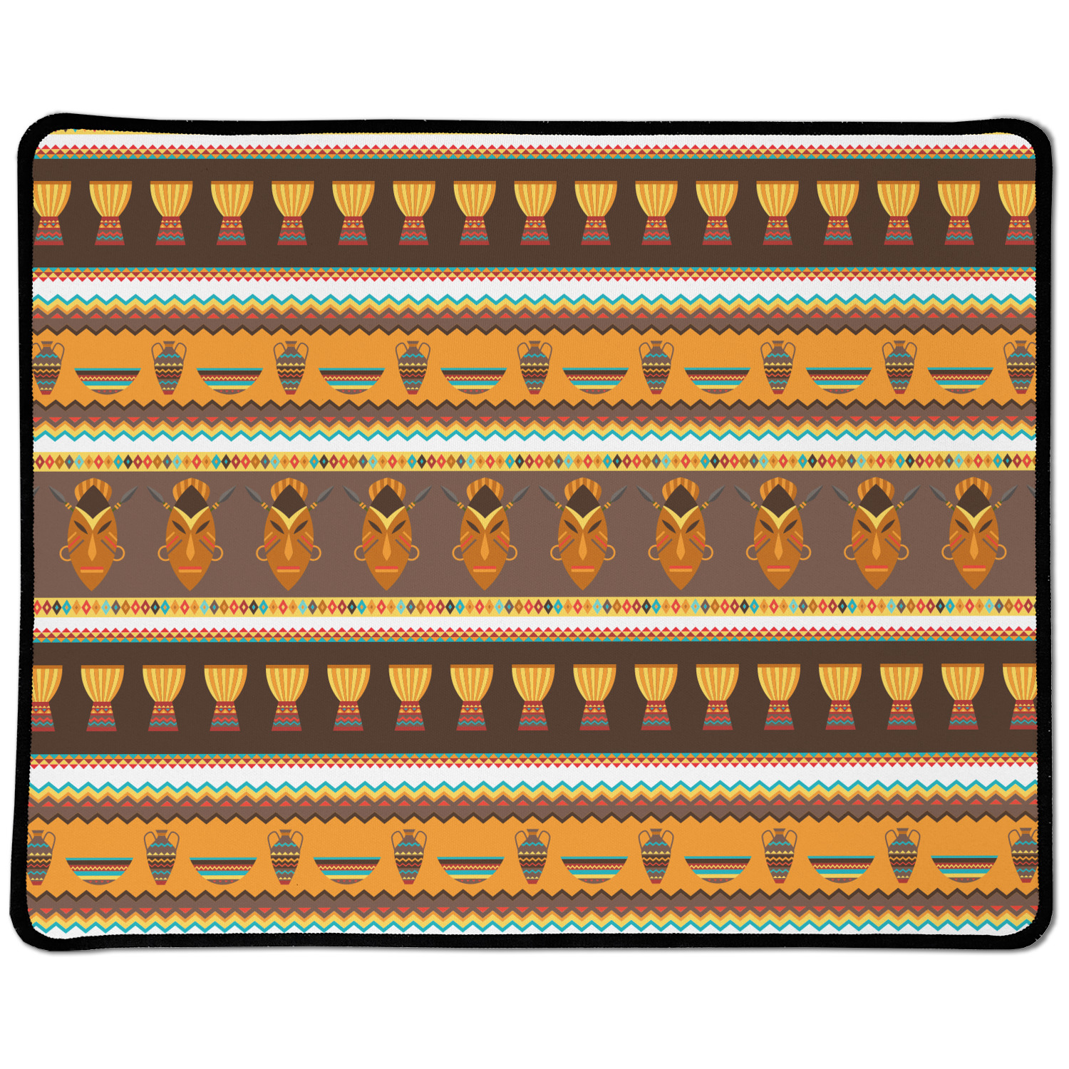 Traditional meets trendy in this fun, tribal design. This African Masks design depicts traditional tribal masks, vases, and bowls all in gorgeous warm colors.