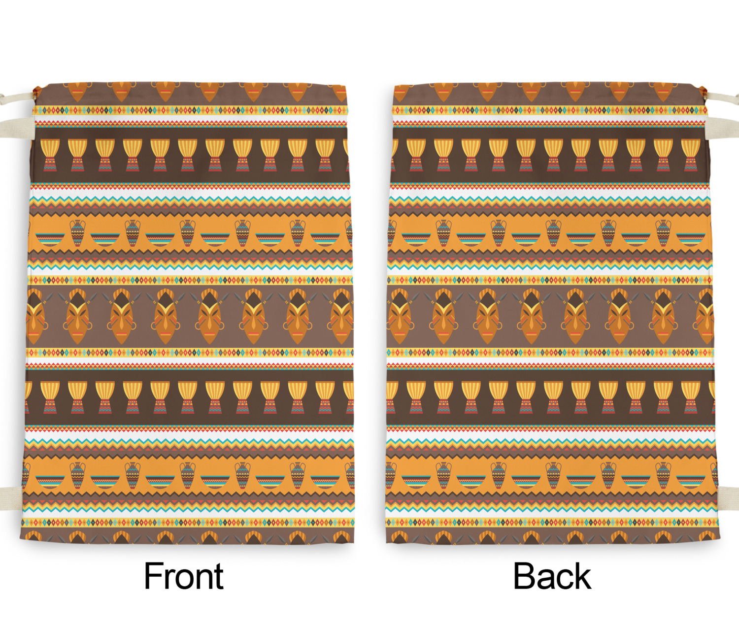 Traditional meets trendy in this fun, tribal design. This African Masks design depicts traditional tribal masks, vases, and bowls all in gorgeous warm colors.