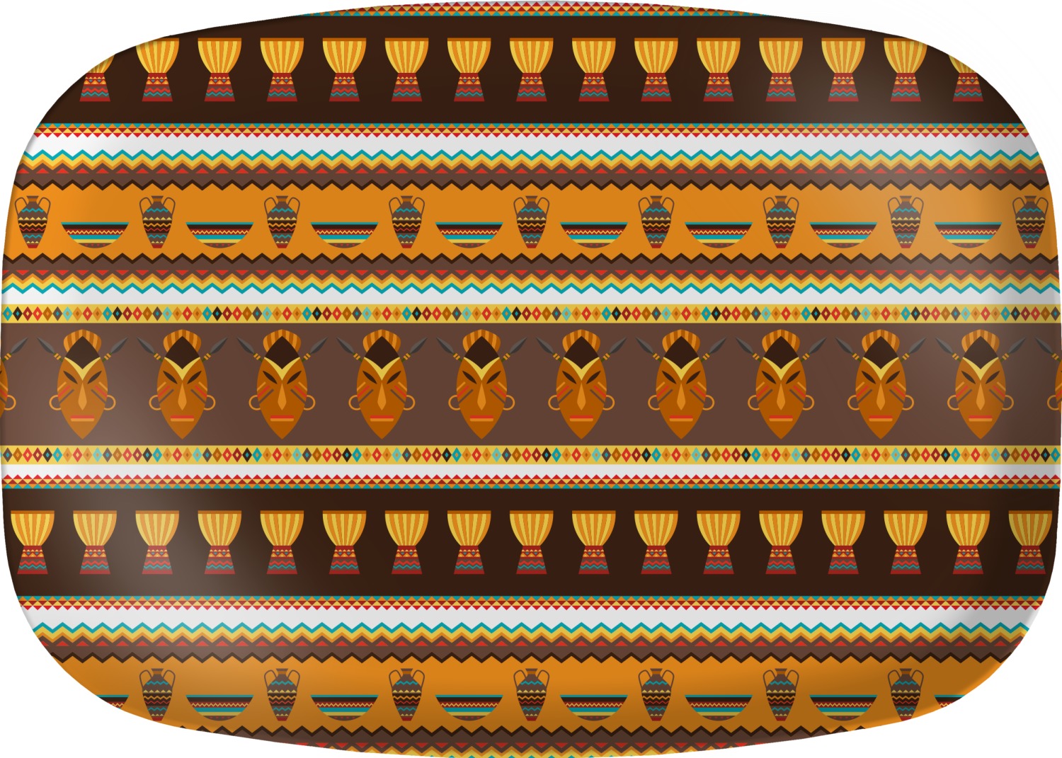 Traditional meets trendy in this fun, tribal design. This African Masks design depicts traditional tribal masks, vases, and bowls all in gorgeous warm colors.