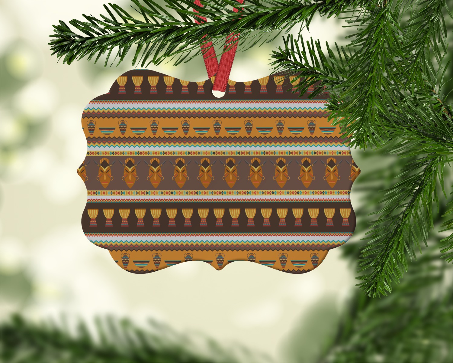 Traditional meets trendy in this fun, tribal design. This African Masks design depicts traditional tribal masks, vases, and bowls all in gorgeous warm colors.