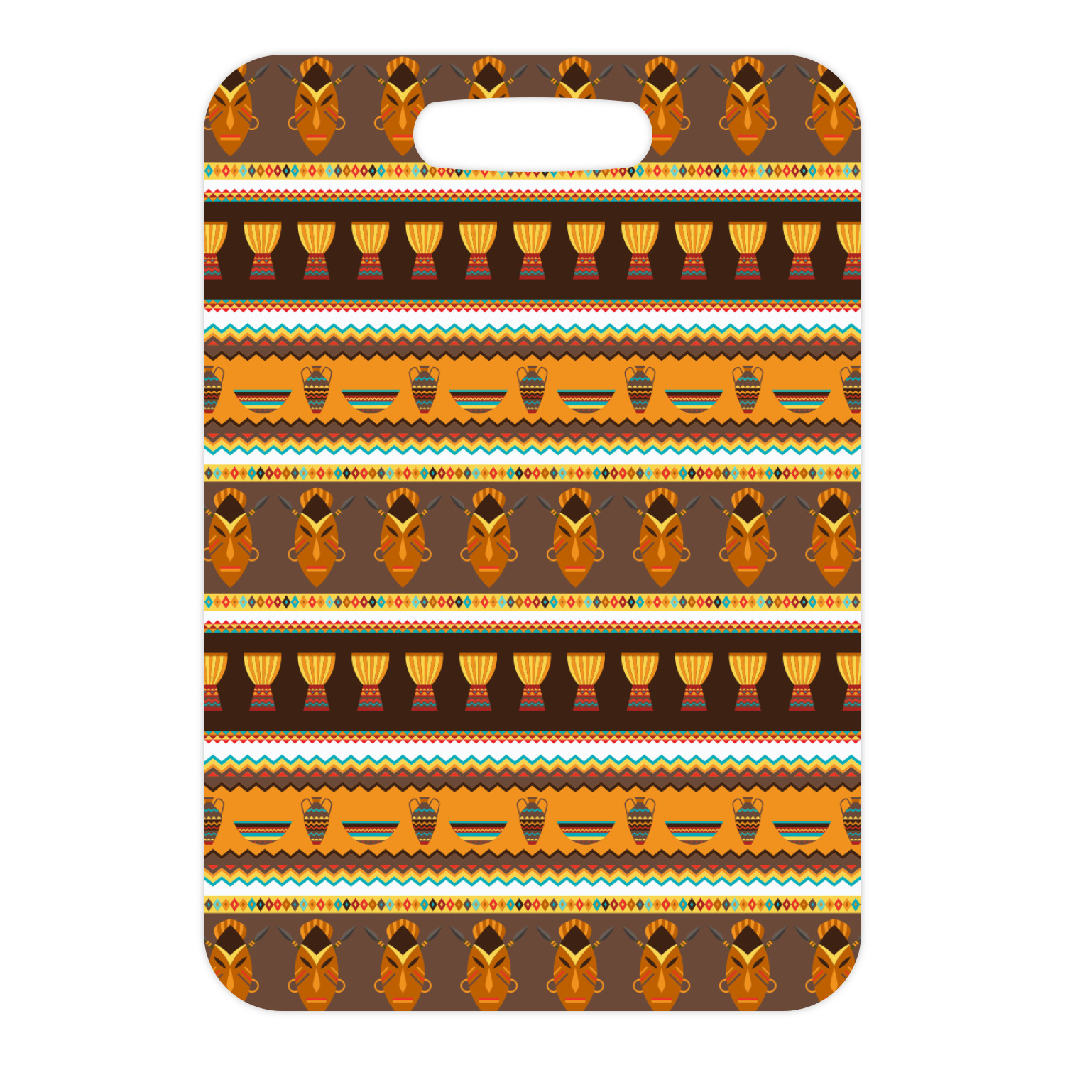 Traditional meets trendy in this fun, tribal design. This African Masks design depicts traditional tribal masks, vases, and bowls all in gorgeous warm colors.