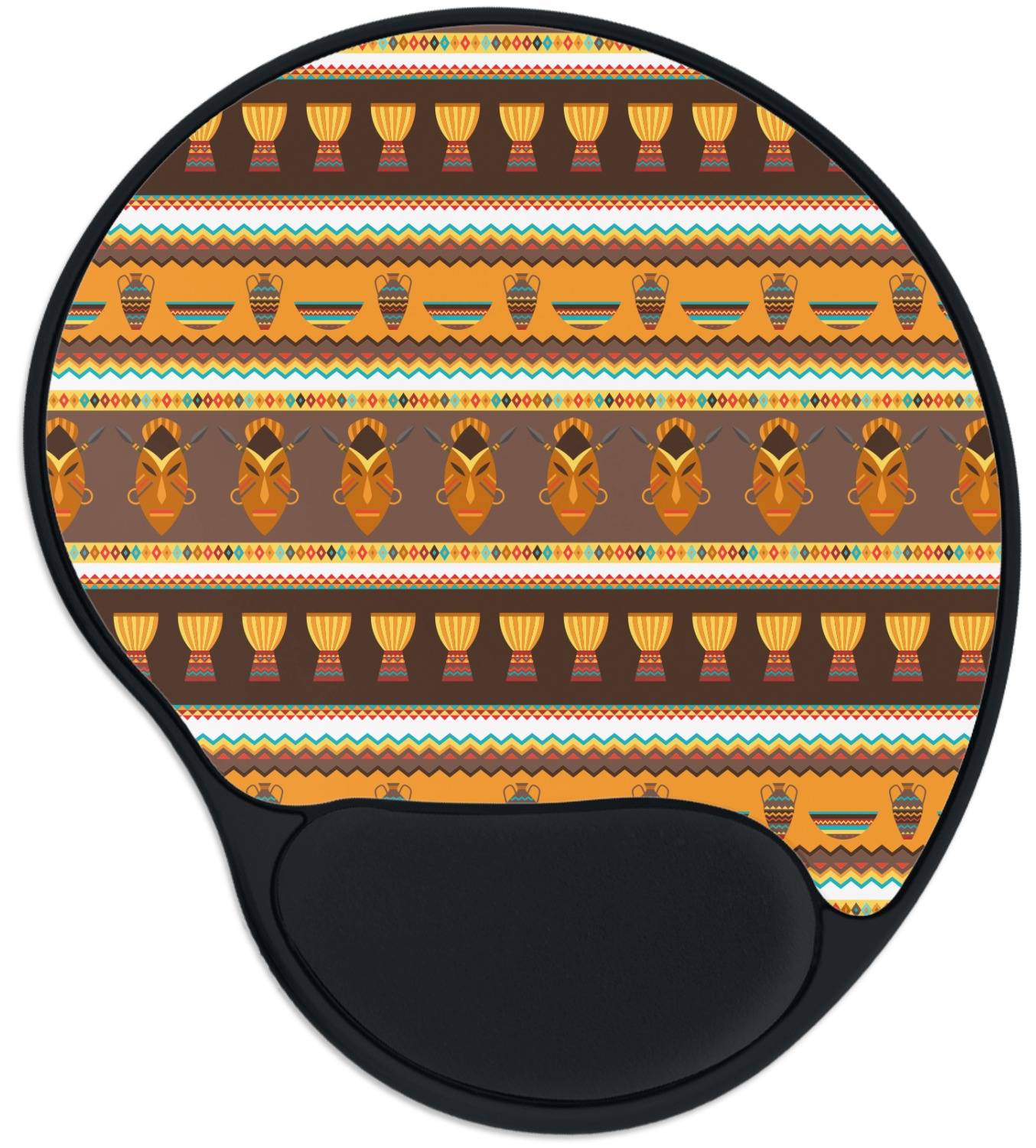 Traditional meets trendy in this fun, tribal design. This African Masks design depicts traditional tribal masks, vases, and bowls all in gorgeous warm colors.