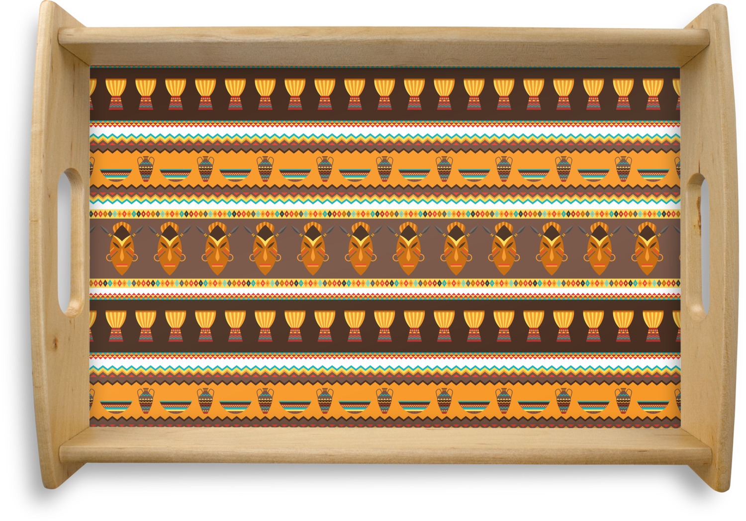 Traditional meets trendy in this fun, tribal design. This African Masks design depicts traditional tribal masks, vases, and bowls all in gorgeous warm colors.