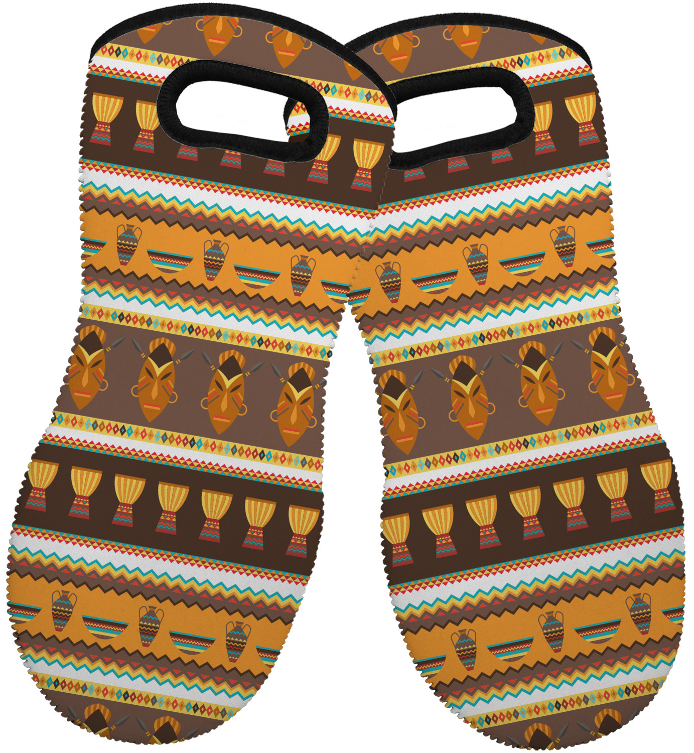 Traditional meets trendy in this fun, tribal design. This African Masks design depicts traditional tribal masks, vases, and bowls all in gorgeous warm colors.
