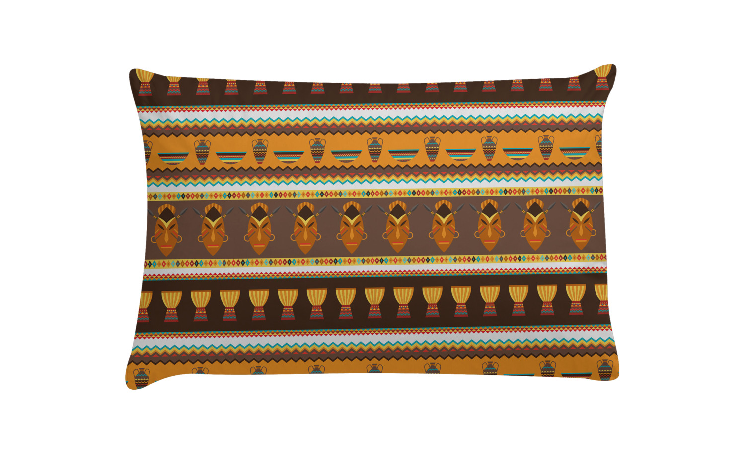 Traditional meets trendy in this fun, tribal design. This African Masks design depicts traditional tribal masks, vases, and bowls all in gorgeous warm colors.