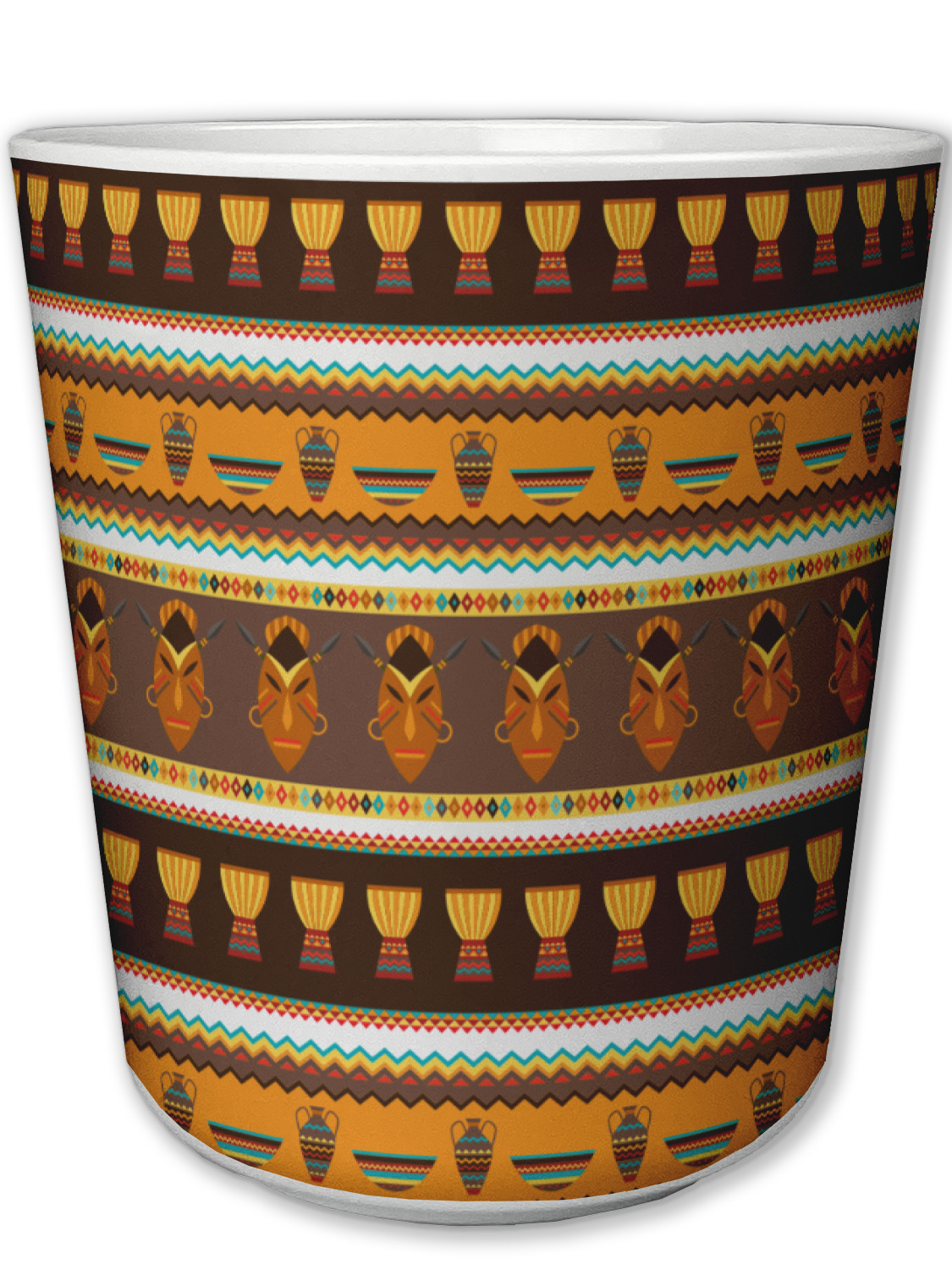 Traditional meets trendy in this fun, tribal design. This African Masks design depicts traditional tribal masks, vases, and bowls all in gorgeous warm colors.