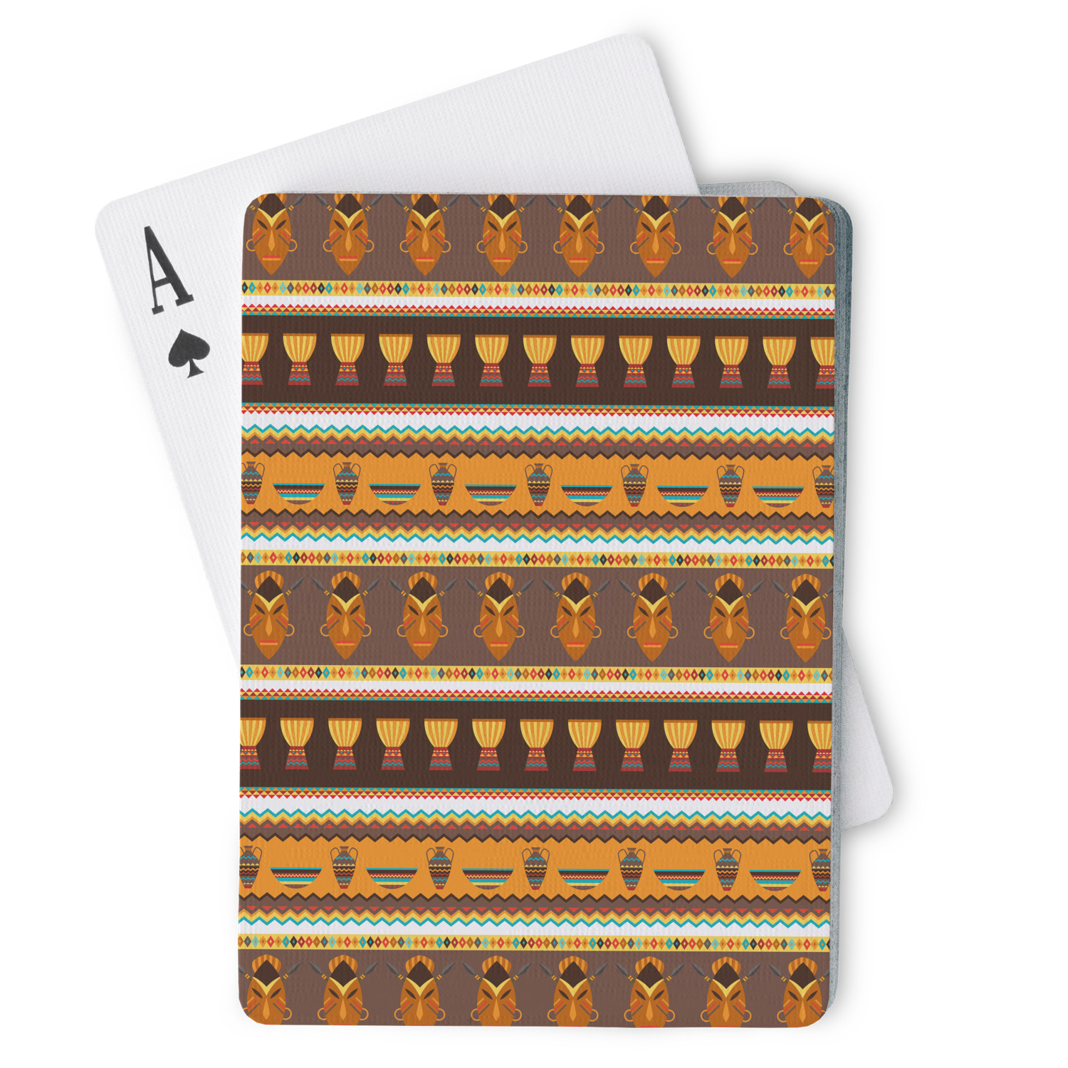 Traditional meets trendy in this fun, tribal design. This African Masks design depicts traditional tribal masks, vases, and bowls all in gorgeous warm colors.