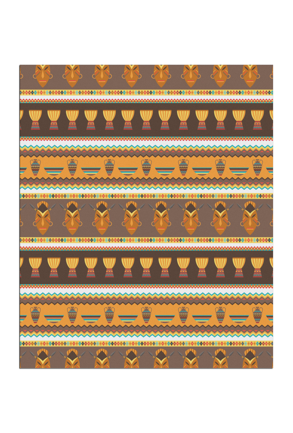 Traditional meets trendy in this fun, tribal design. This African Masks design depicts traditional tribal masks, vases, and bowls all in gorgeous warm colors.