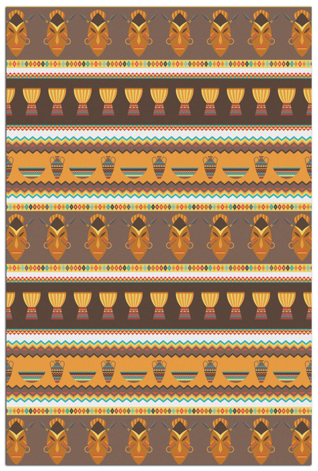 Traditional meets trendy in this fun, tribal design. This African Masks design depicts traditional tribal masks, vases, and bowls all in gorgeous warm colors.