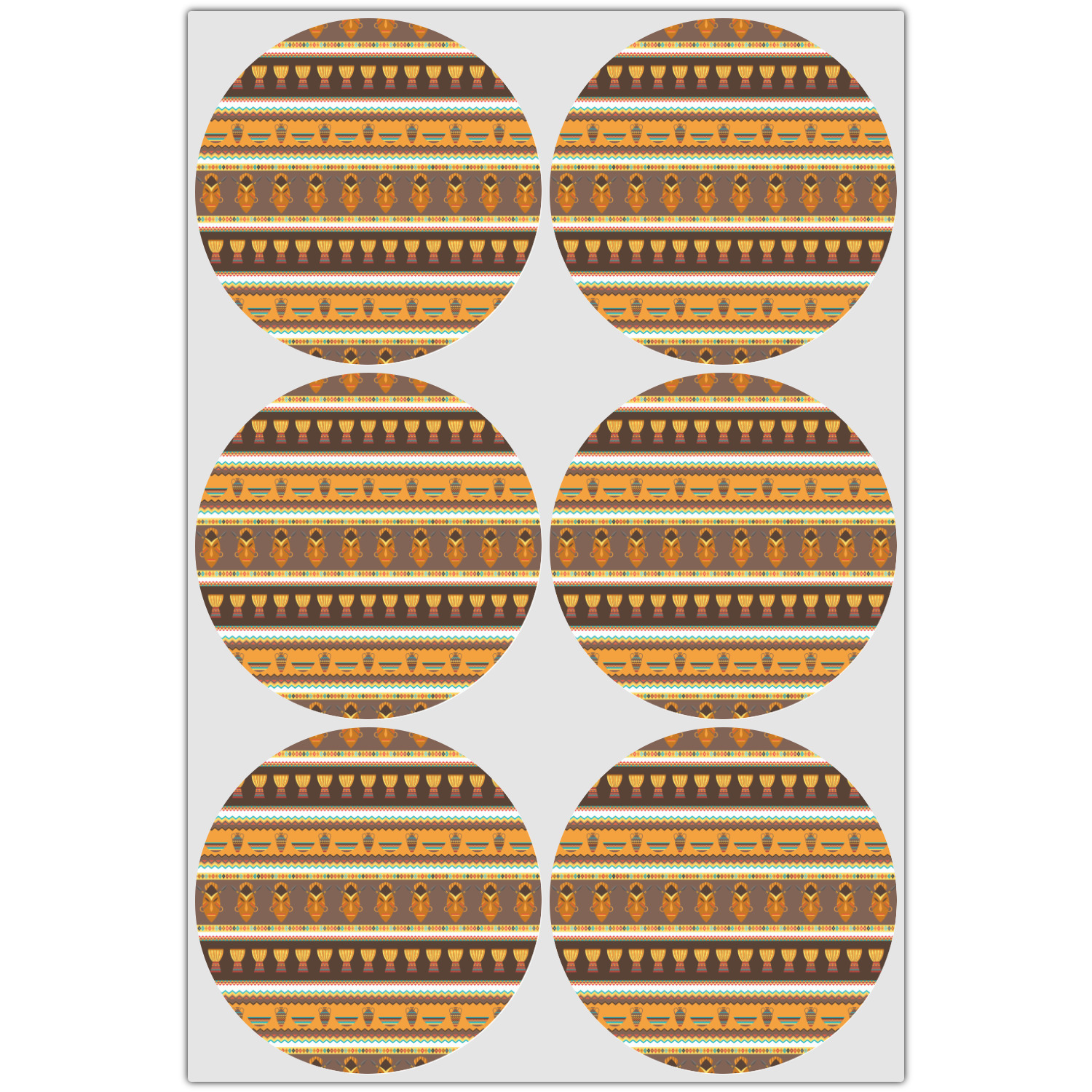 Traditional meets trendy in this fun, tribal design. This African Masks design depicts traditional tribal masks, vases, and bowls all in gorgeous warm colors.