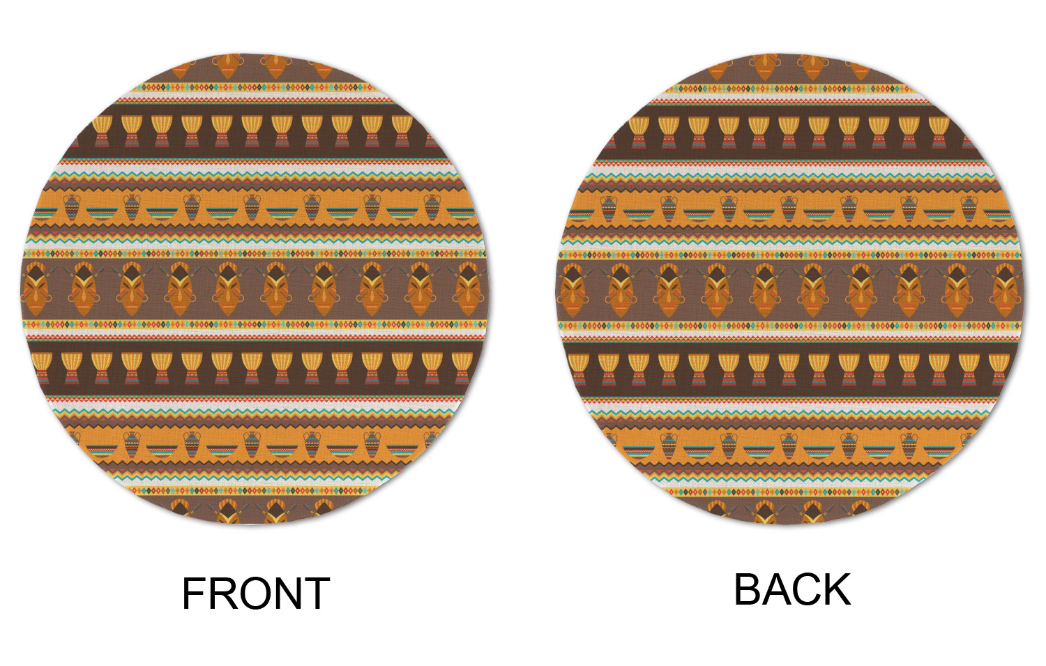 Traditional meets trendy in this fun, tribal design. This African Masks design depicts traditional tribal masks, vases, and bowls all in gorgeous warm colors.