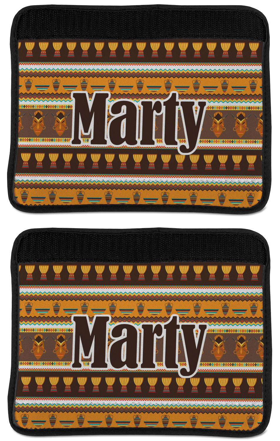 Made from neoprene, our seat belt strap covers wrap around the belt itself and have a Velcro tab for easy attachment and closure. The belt's edges are trimmed with a black polyester for a secure finish. Each cover is 9.5 by 7 inches when open and 9.5 by 2.5 inches when closed. We print your personalized design on the face of the seat belt pad.