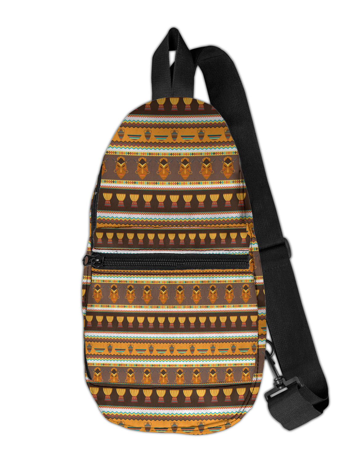 Traditional meets trendy in this fun, tribal design. This African Masks design depicts traditional tribal masks, vases, and bowls all in gorgeous warm colors.