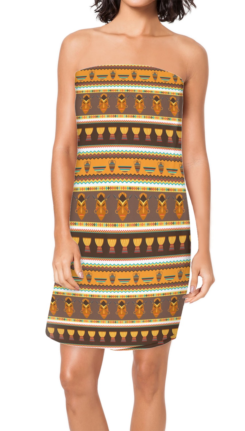 Traditional meets trendy in this fun, tribal design. This African Masks design depicts traditional tribal masks, vases, and bowls all in gorgeous warm colors.
