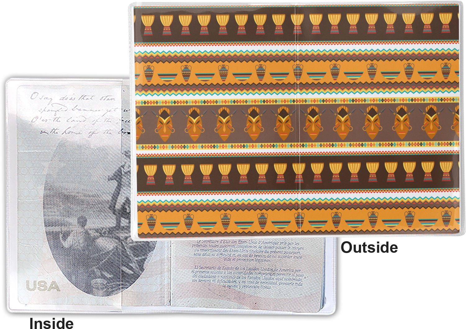 This cover is made of a sturdy clear vinyl with a personalized vinyl insert inside. There is a large and a small pocket on either side to hold the covers of your passport easily and firmly. The passport holder is approximately 7.5" x 5.25", the perfect size to snugly fit your passport. This slim cover is the perfect way to protect your passport without being one more bulky item you have to carry.