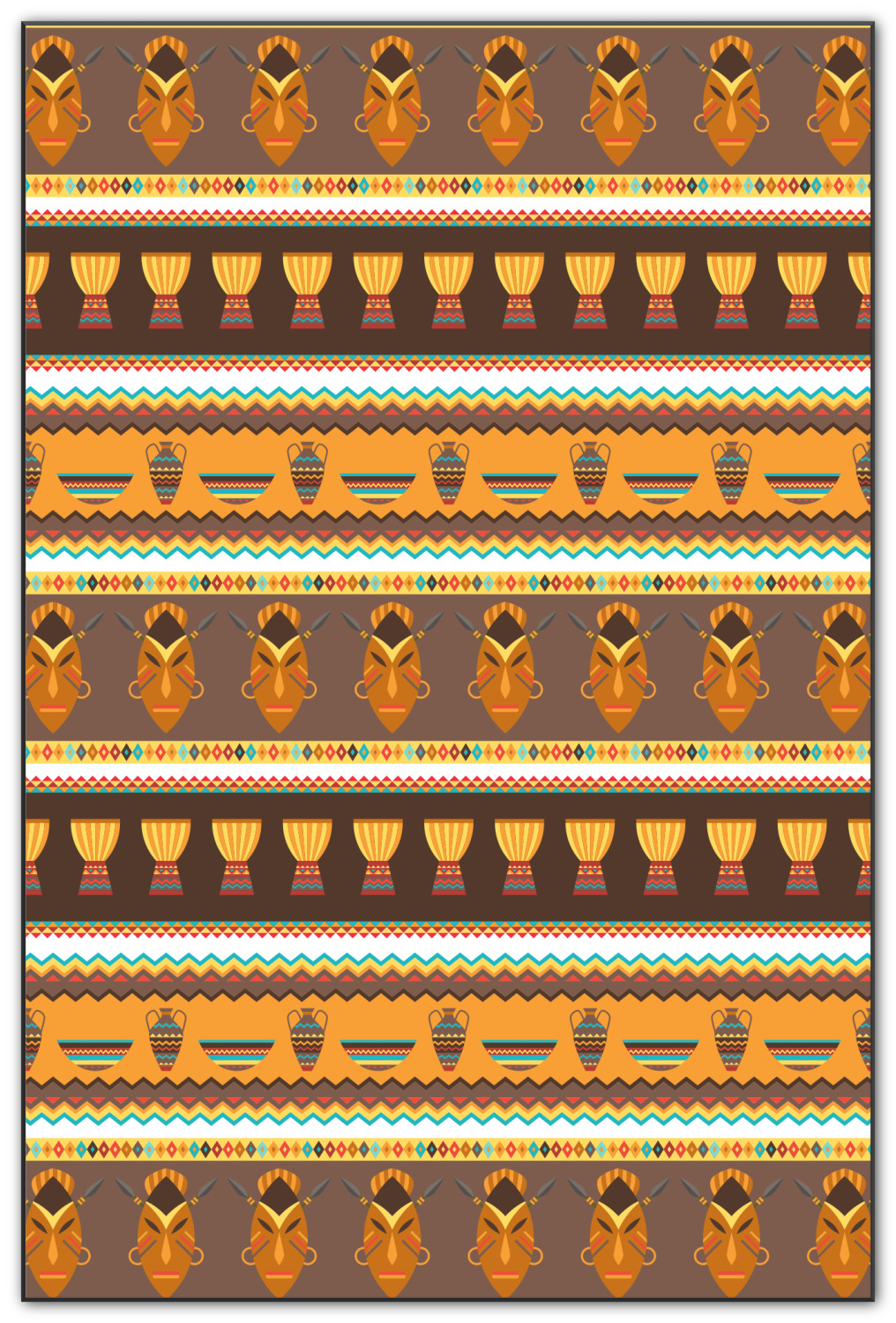 Traditional meets trendy in this fun, tribal design. This African Masks design depicts traditional tribal masks, vases, and bowls all in gorgeous warm colors.
