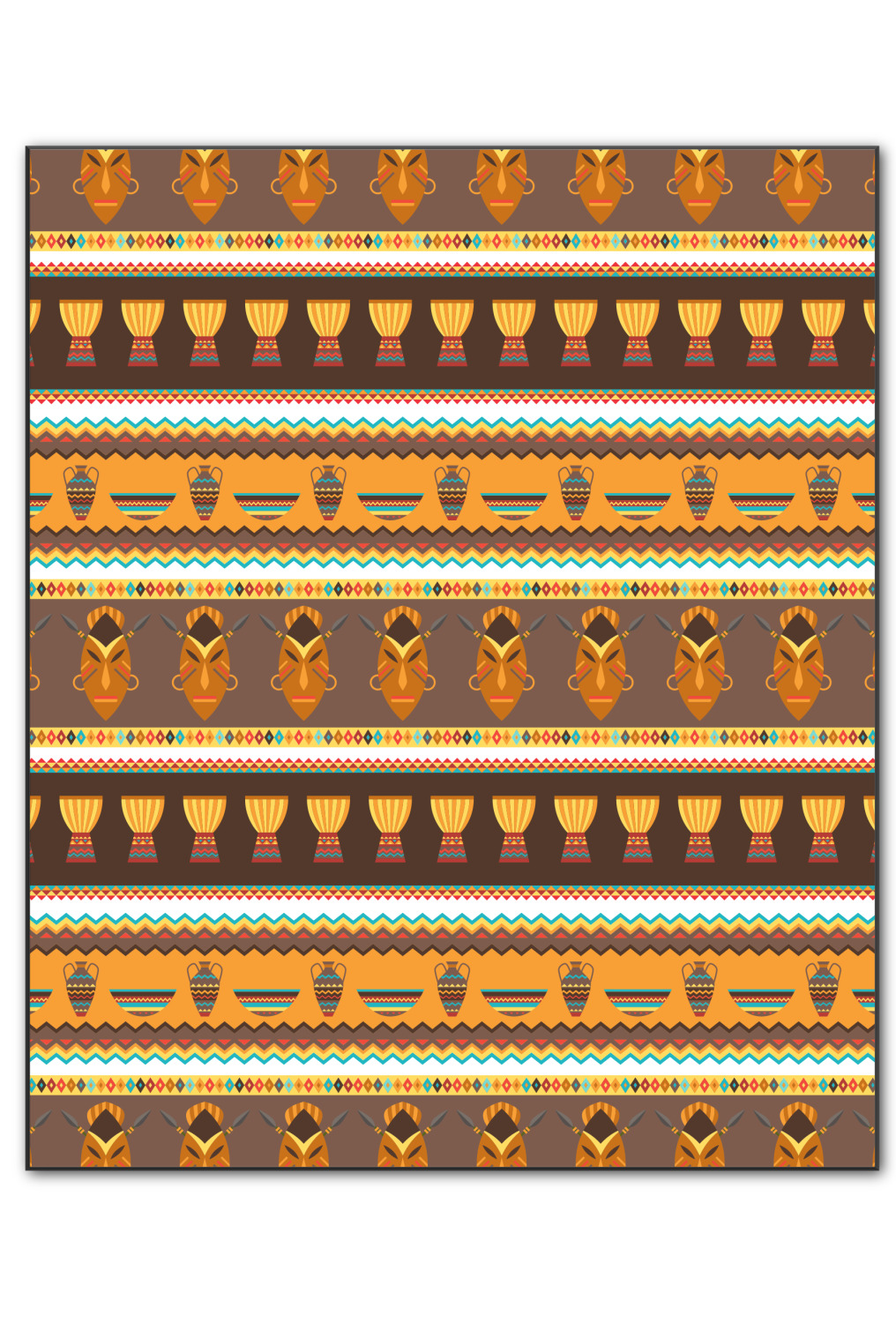 Traditional meets trendy in this fun, tribal design. This African Masks design depicts traditional tribal masks, vases, and bowls all in gorgeous warm colors.