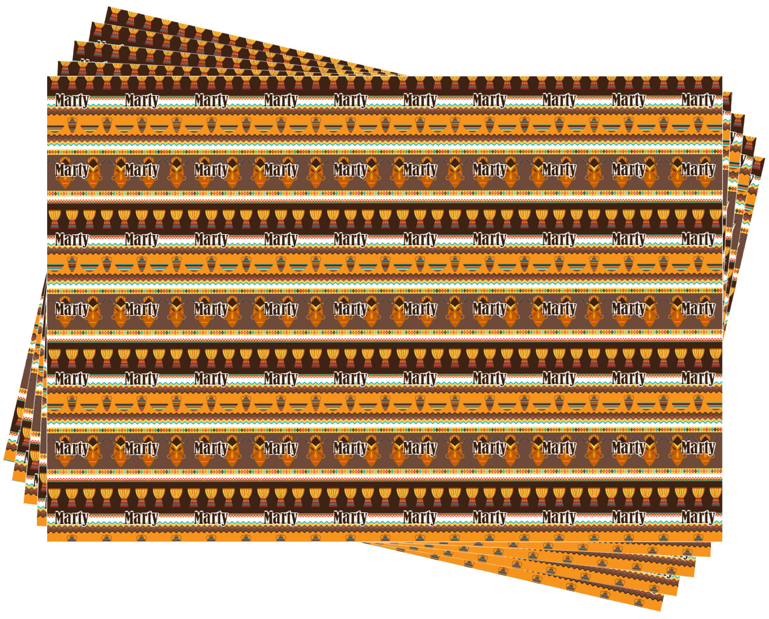Traditional meets trendy in this fun, tribal design. This African Masks design depicts traditional tribal masks, vases, and bowls all in gorgeous warm colors.