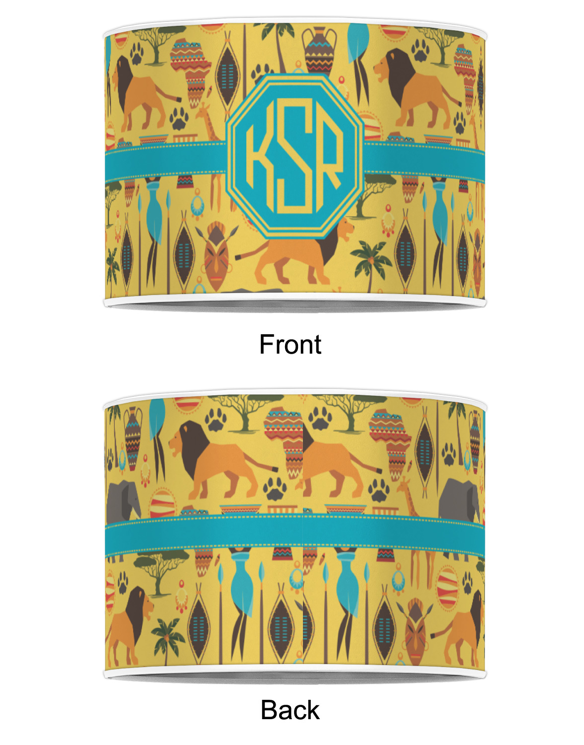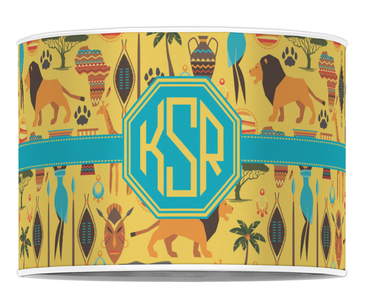 When you think of Africa, multiple things come to mind. Lions. Elephants. Giraffes. Intricate vases. This design encompasses everything you could imagine about the African Safari, all overlaid on a bright yellow background.