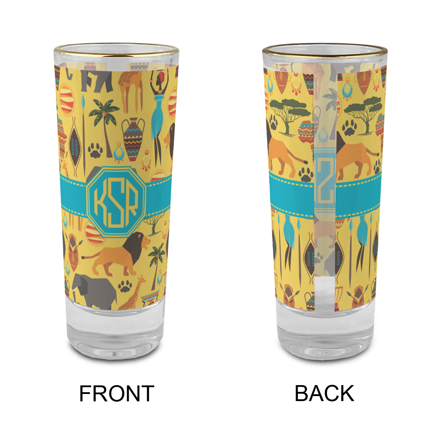 These glass shooter glasses are printed in full color with the design of your choice. These are a tall shooter 2 oz size and stand 4" tall. The print is a full wrap design to boldly display your personalization.