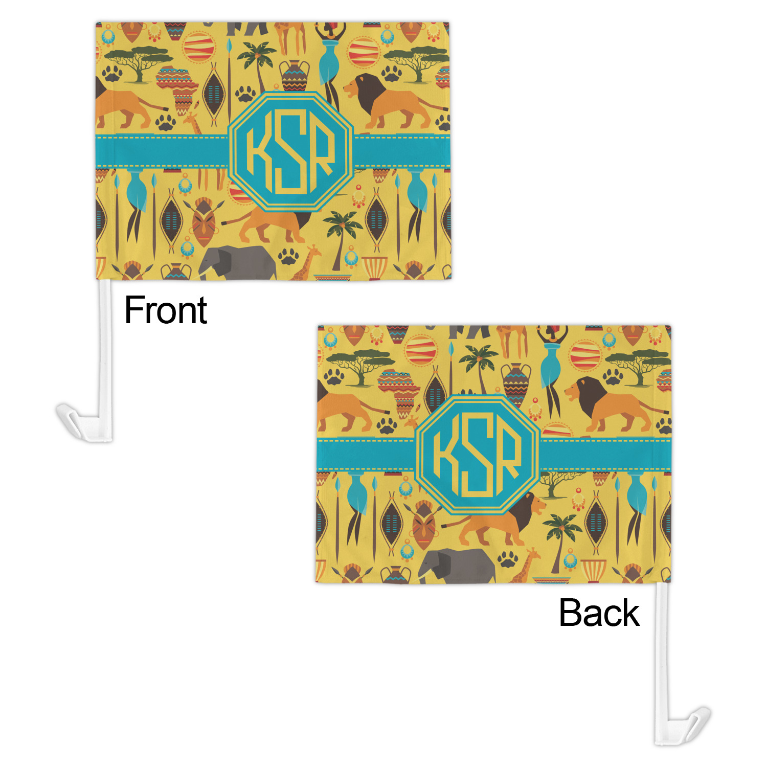 Our personalized flags are made from a durable, yet lightweight cloth that will proudly bear your logo or design of choice, while withstanding the outside elements. We have two size options - 8" x 11" and 11" x 15". Both come with a flag pole which includes a clip that secures the pole to the side window, whether it is rolled up or down. The flags are printed on both sides to display your design from all directions.
