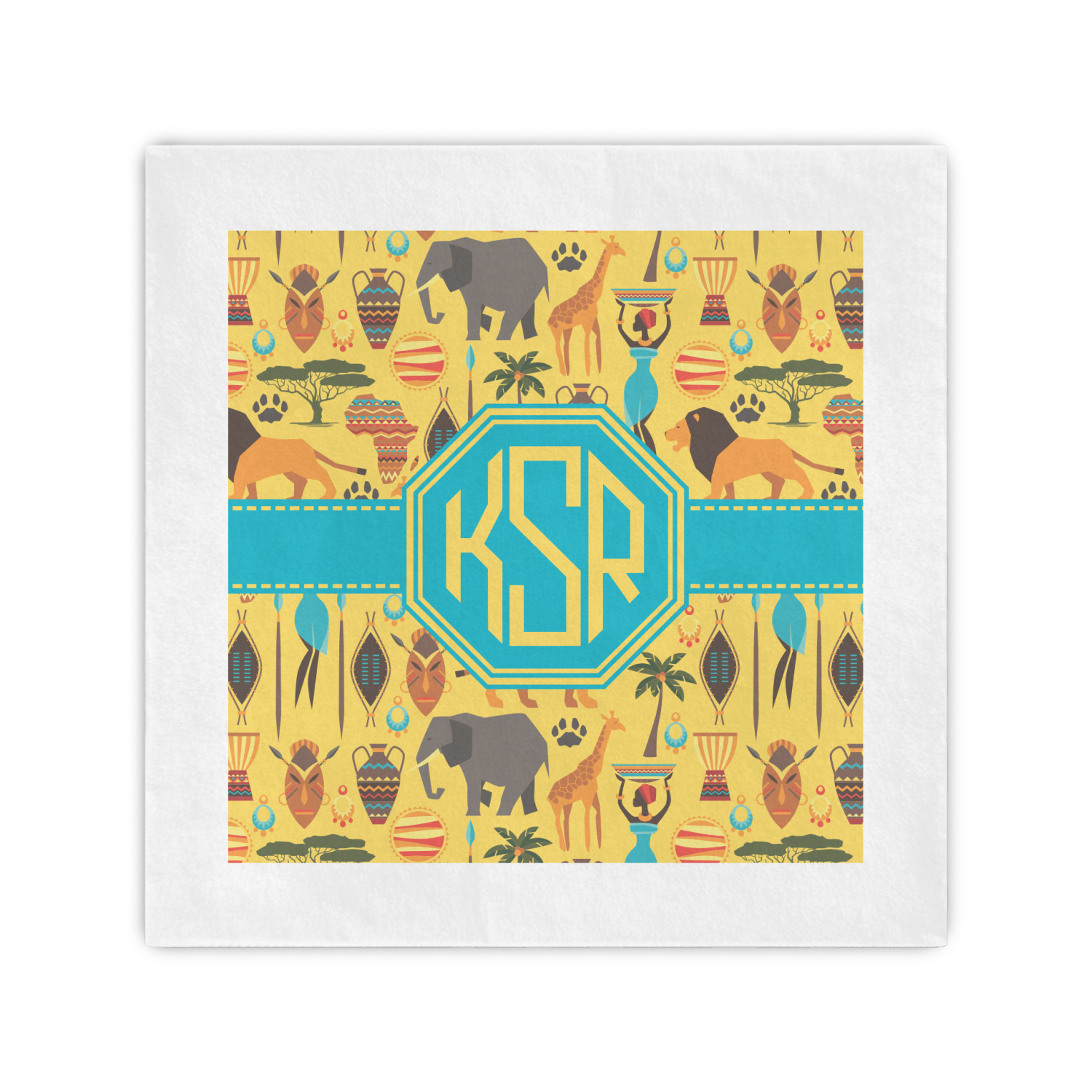 When you think of Africa, multiple things come to mind. Lions. Elephants. Giraffes. Intricate vases. This design encompasses everything you could imagine about the African Safari, all overlaid on a bright yellow background.