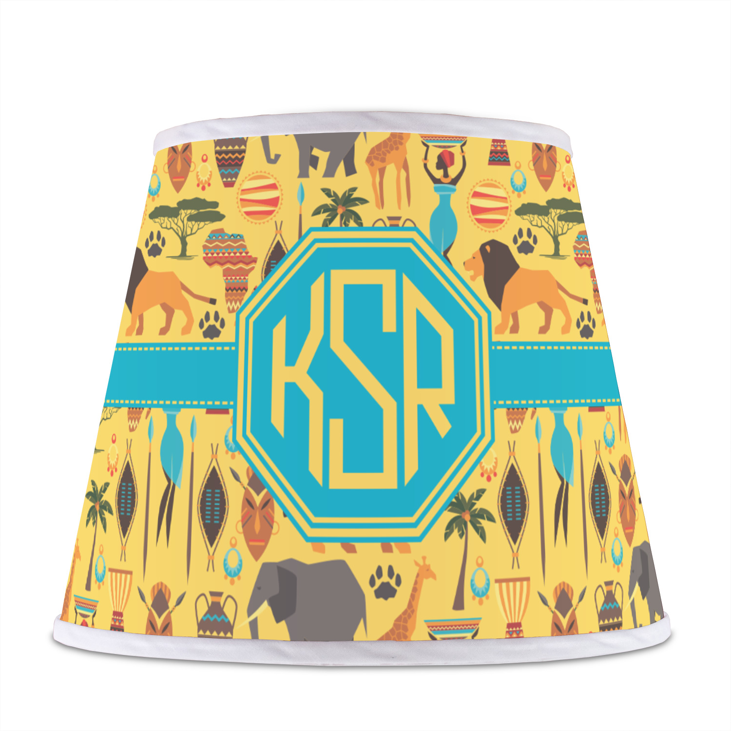 When you think of Africa, multiple things come to mind. Lions. Elephants. Giraffes. Intricate vases. This design encompasses everything you could imagine about the African Safari, all overlaid on a bright yellow background.
