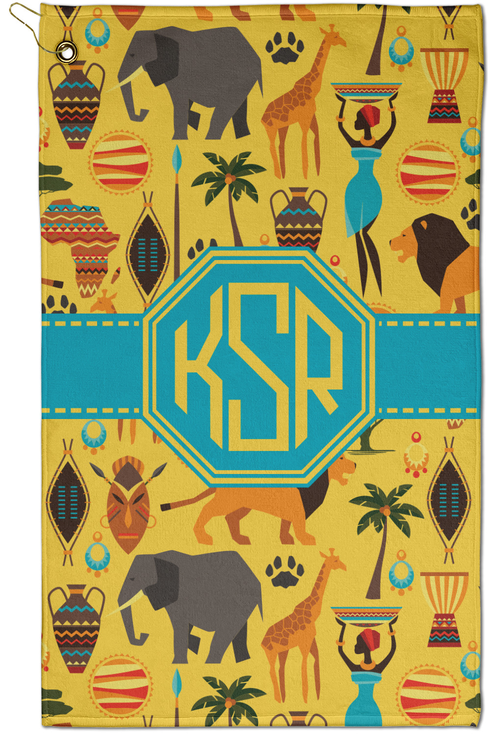 When you think of Africa, multiple things come to mind. Lions. Elephants. Giraffes. Intricate vases. This design encompasses everything you could imagine about the African Safari, all overlaid on a bright yellow background.