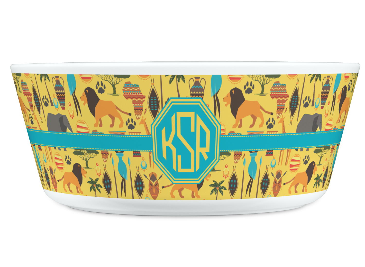 When you think of Africa, multiple things come to mind. Lions. Elephants. Giraffes. Intricate vases. This design encompasses everything you could imagine about the African Safari, all overlaid on a bright yellow background.