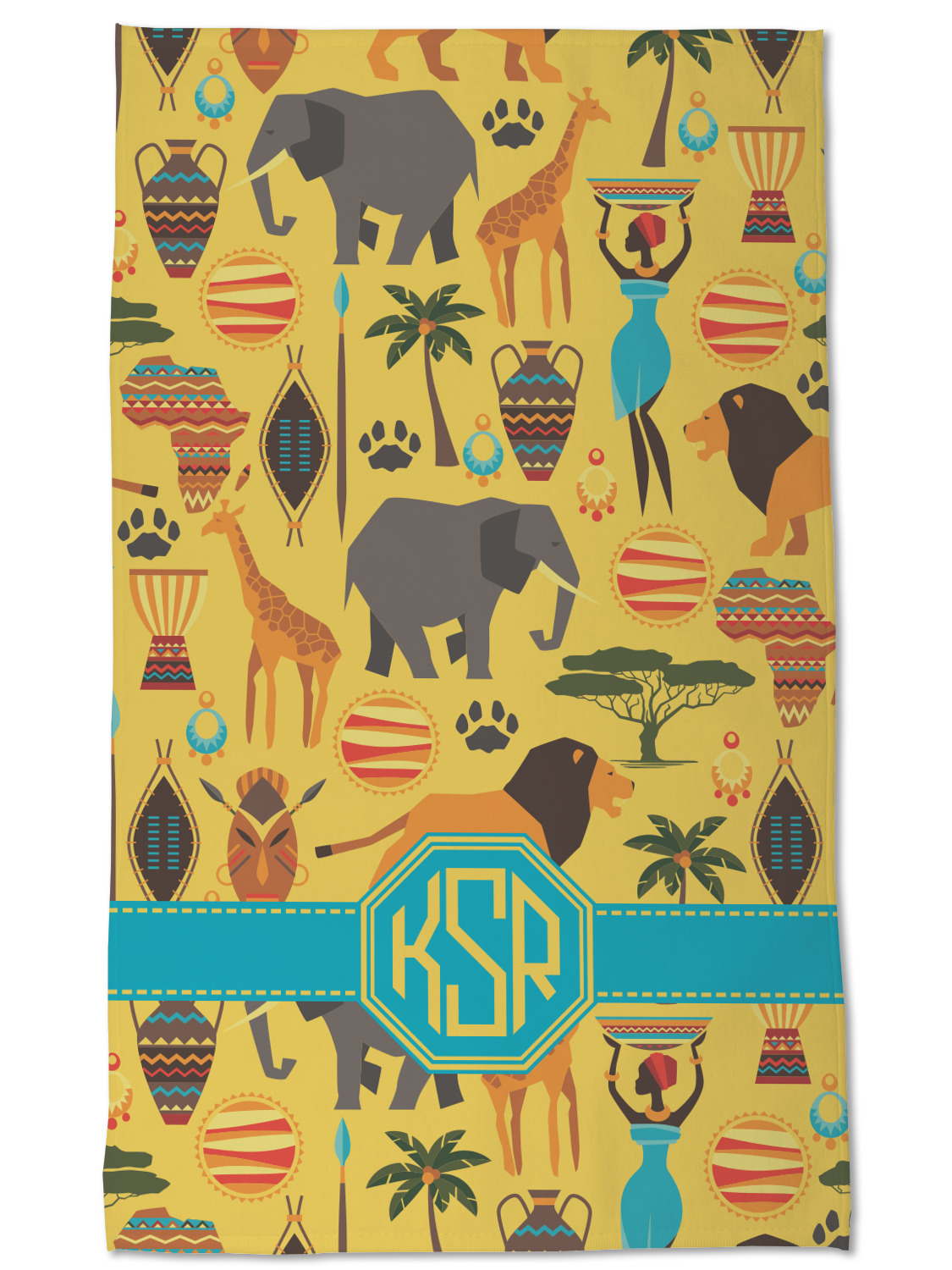 When you think of Africa, multiple things come to mind. Lions. Elephants. Giraffes. Intricate vases. This design encompasses everything you could imagine about the African Safari, all overlaid on a bright yellow background.