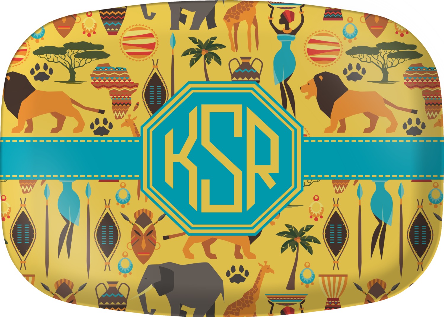 When you think of Africa, multiple things come to mind. Lions. Elephants. Giraffes. Intricate vases. This design encompasses everything you could imagine about the African Safari, all overlaid on a bright yellow background.