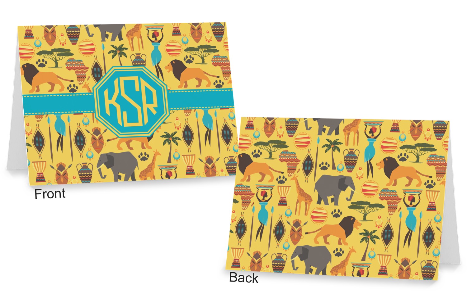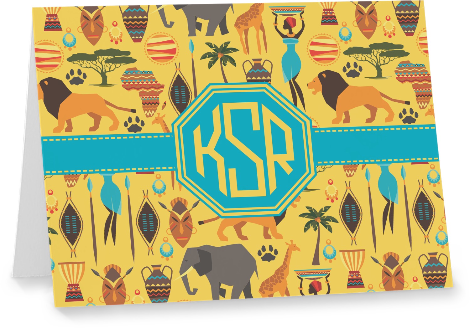 When you think of Africa, multiple things come to mind. Lions. Elephants. Giraffes. Intricate vases. This design encompasses everything you could imagine about the African Safari, all overlaid on a bright yellow background.