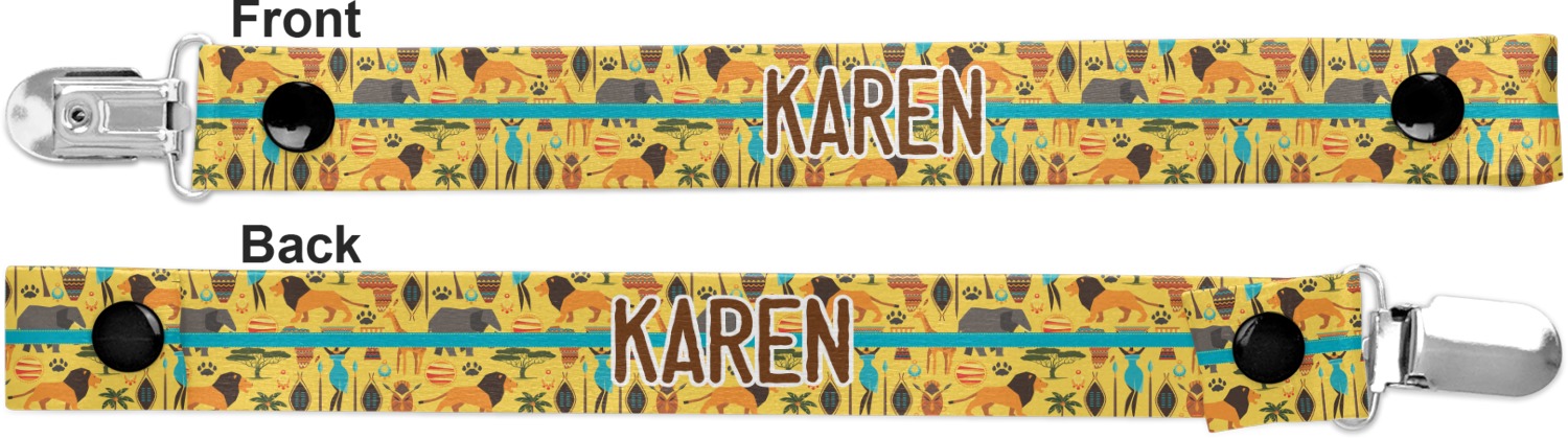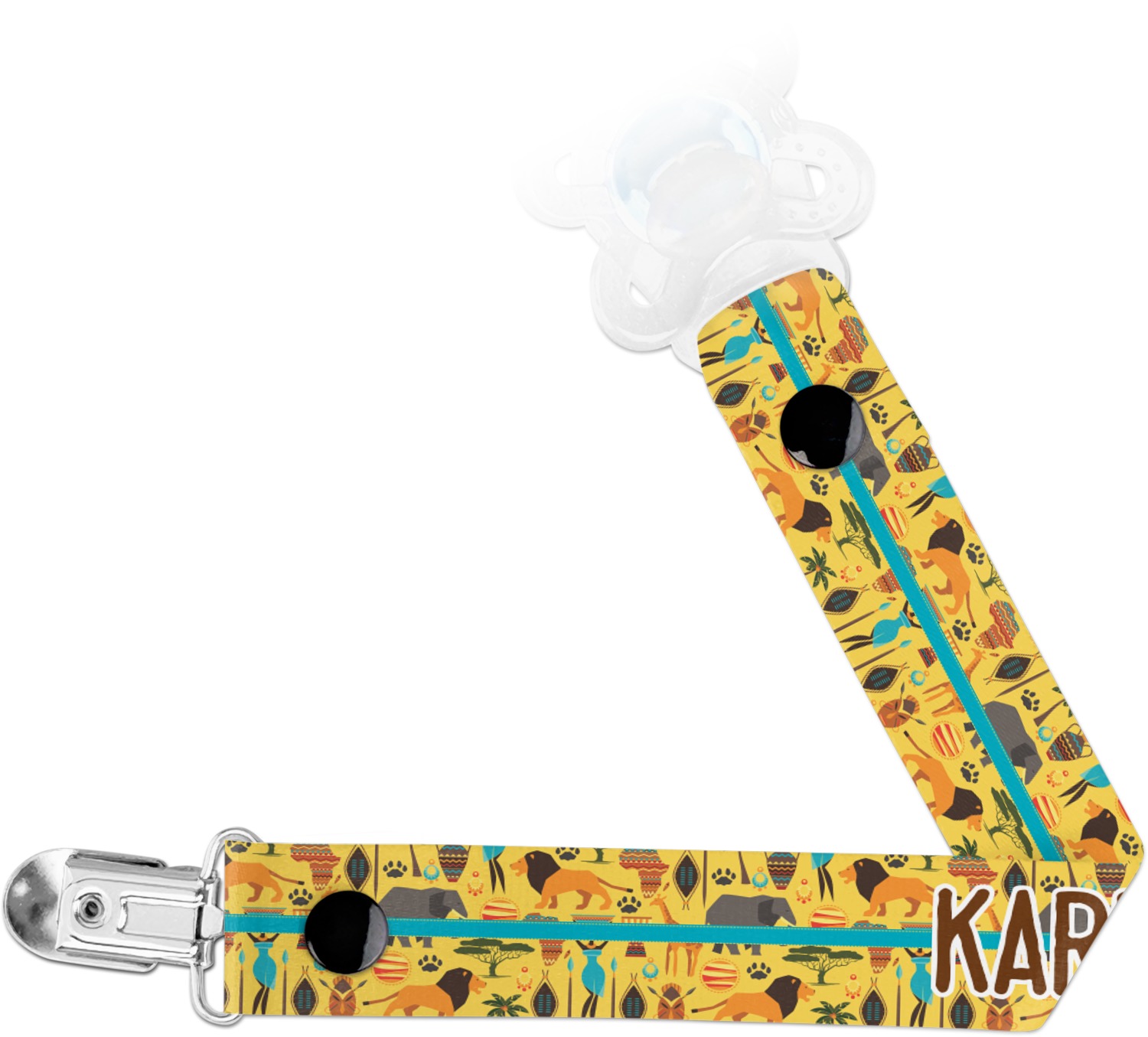This personalized pacifier clip is the ideal size and measures at approximately 7.5 inches in length, when either end is snapped closed. On one end, you'll find a snap button. This button of your baby's pacifier holder is what can be attached to their pacifier to hold is securely in place. Simply open the snap, slip it through the pacifier opening, and snap it back into place. On the opposite end of this baby pacifier holder, you'll find a metal clip that can secure to a baby's collar or sleeve. This clip ensures that the strap stays in place, and that your baby's pacifier is always on hand.