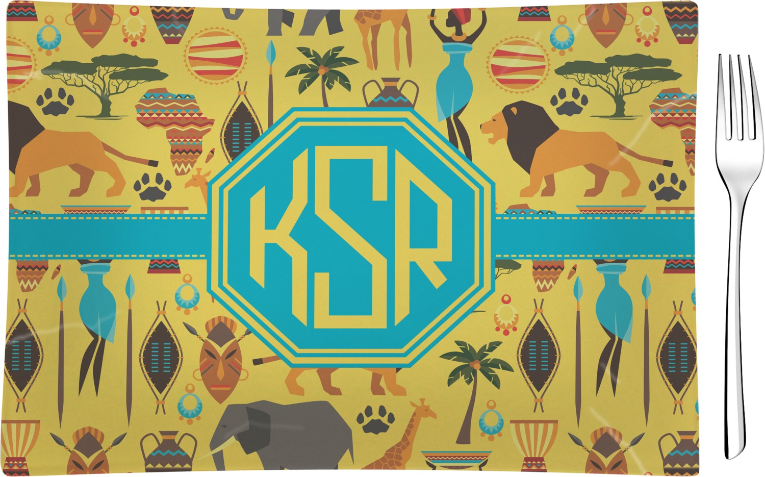 When you think of Africa, multiple things come to mind. Lions. Elephants. Giraffes. Intricate vases. This design encompasses everything you could imagine about the African Safari, all overlaid on a bright yellow background.
