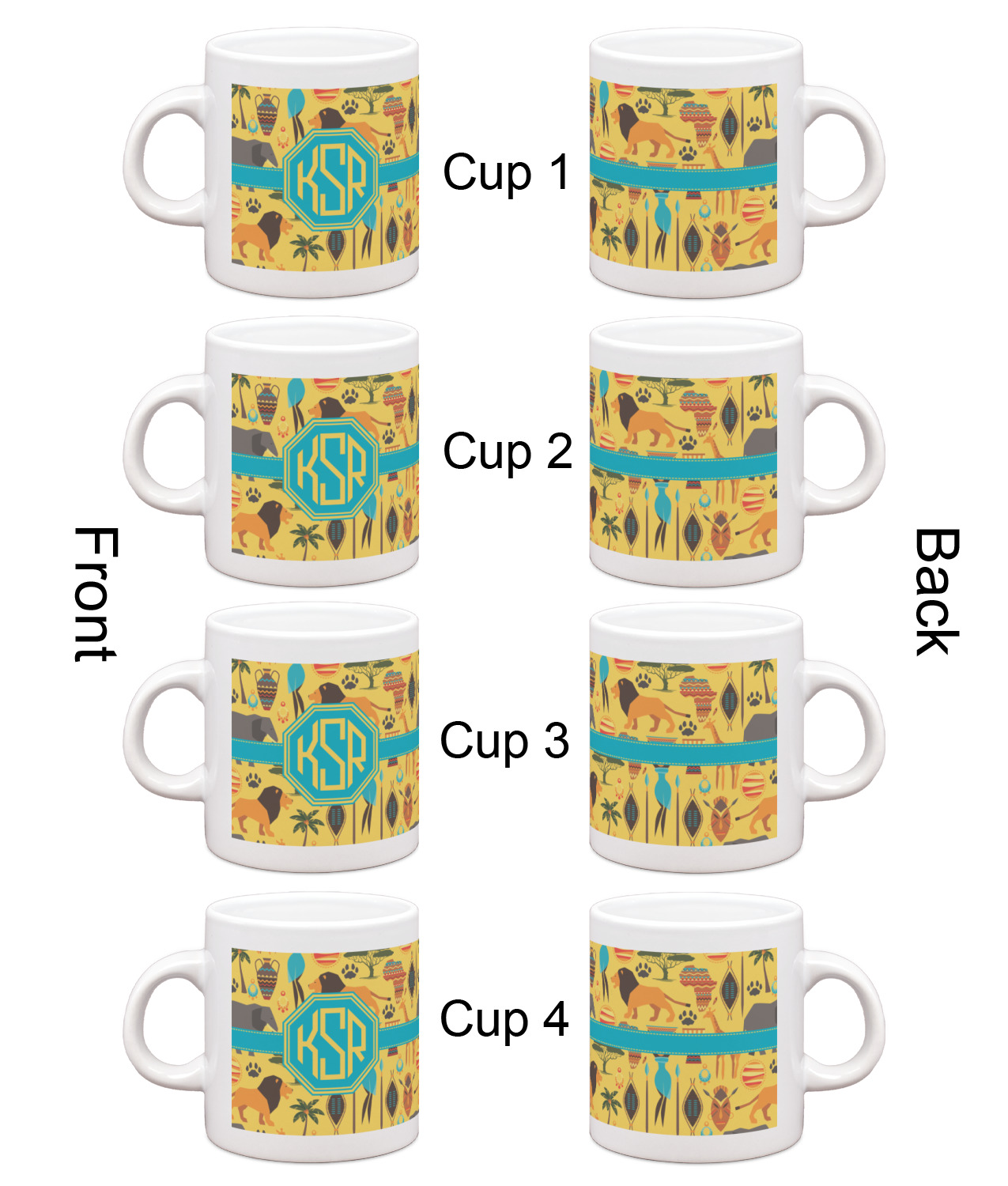 Each of our espresso mugs is a ceramic material sure to keep your drink warm. Personalize one cup for yourself, or order a set of 4! Its the perfect little gift for any coffee lover! We carry two sizes for you to personalize - 3 oz. (approx. 3.25" x 2.325" x 2.625") or 6 oz. (approx. 4" x 2.9" x 2.9"). Our 3 oz. mug is perfect for that single shot espresso while our 6 oz. mug can be your next favorite cappuccino cup holding two shots of espresso!
