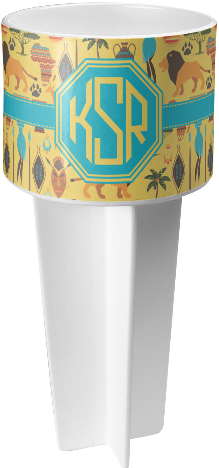 This cup holder has a large stake at its bottom that anchors it to the sand or ground below, while the cup holder rests above the stake. The entire drink holder is made of durable plastic and displays your customization around the cup holder portion. We sell these personalized beach spikers in two different colors: black and white.