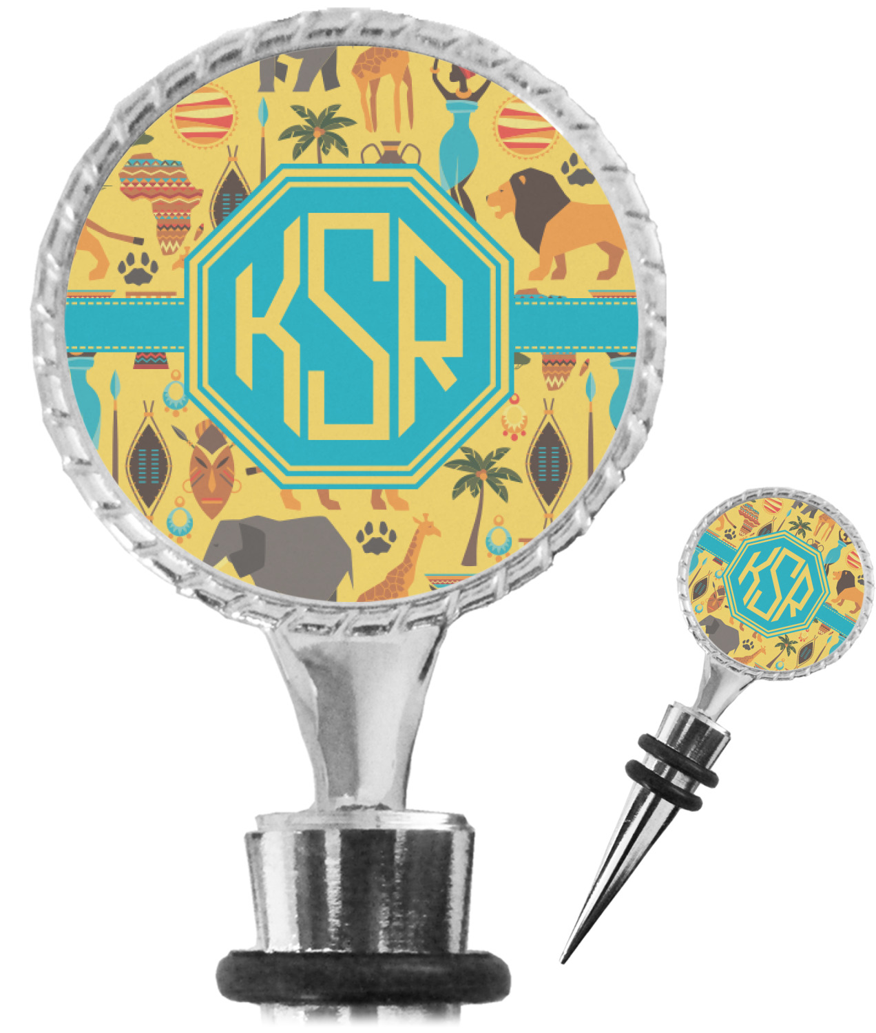 The top part of your bottle stopper is comprised of a zinc ring that displays your customization(s) in its middle, on both sides. The ring is heavy duty, with a bright chrome finish. The body of the wine stoppers have two silicone rings to provide an airtight seal. These wine bottle stoppers measure at 1.625" L x 0.8125" W x 4.625" H; your custom wine stopper is meant to fit into most standard-sized wine bottles.