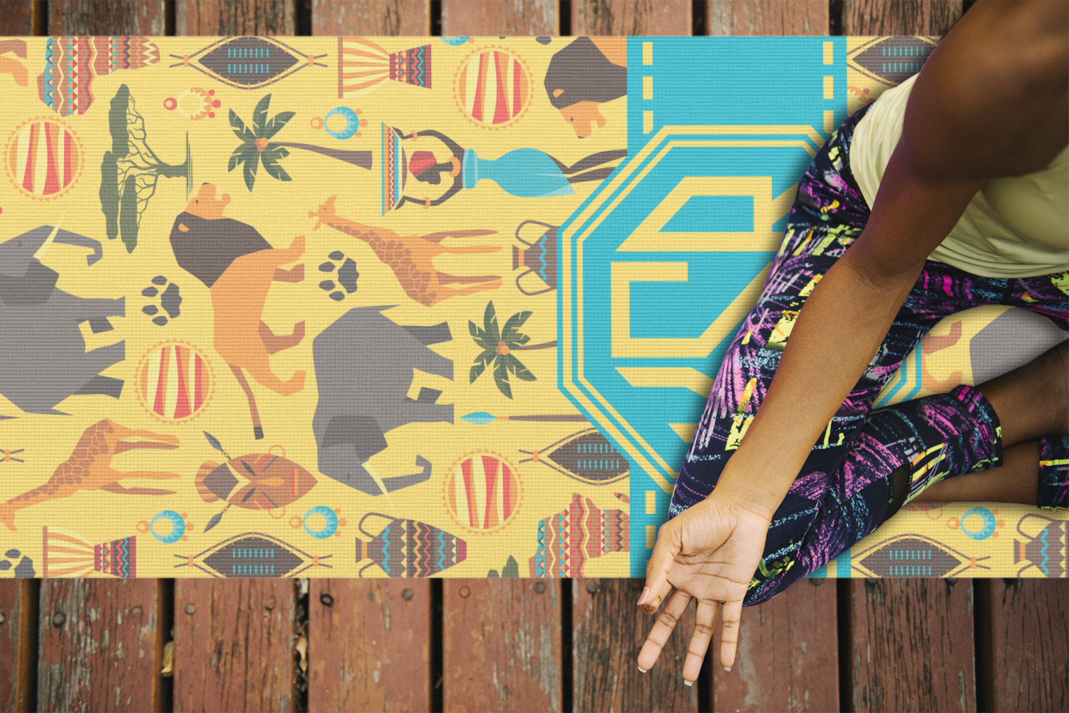 When you think of Africa, multiple things come to mind. Lions. Elephants. Giraffes. Intricate vases. This design encompasses everything you could imagine about the African Safari, all overlaid on a bright yellow background.