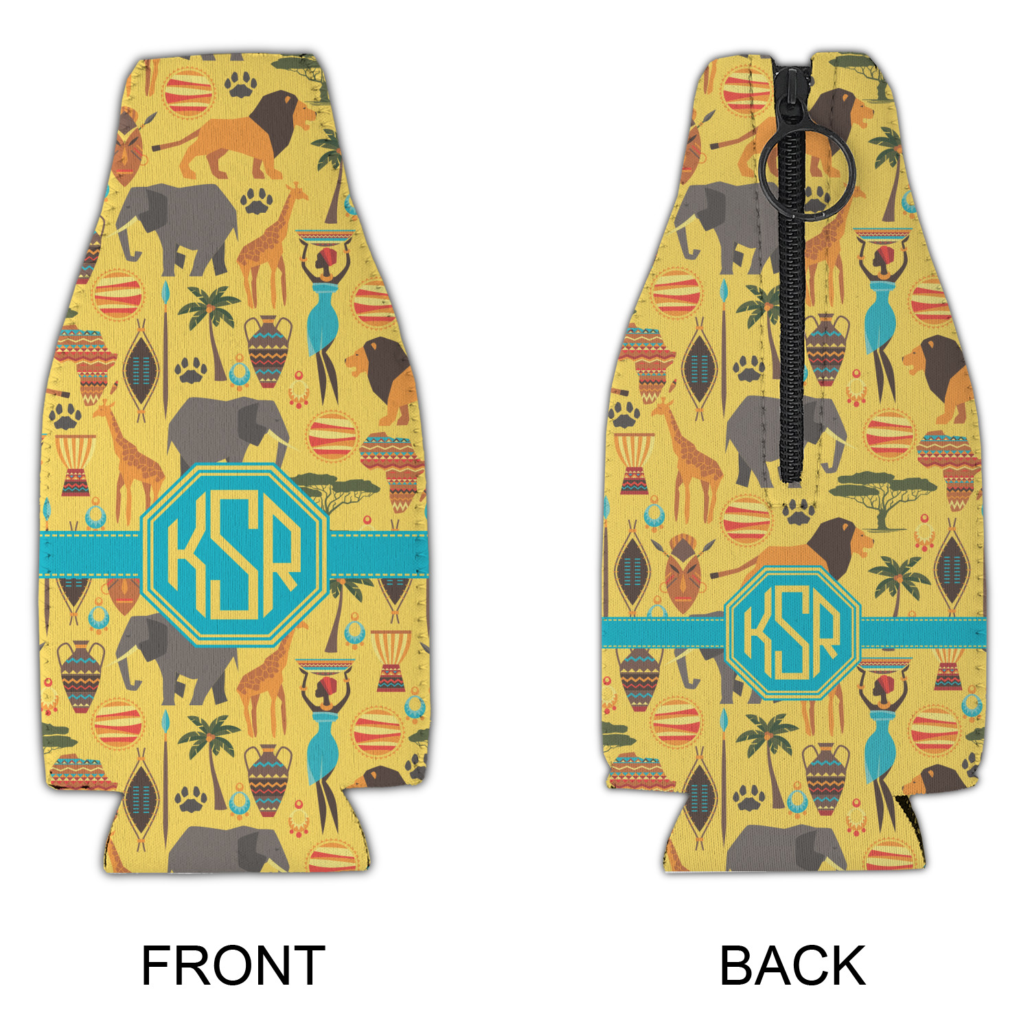 When you think of Africa, multiple things come to mind. Lions. Elephants. Giraffes. Intricate vases. This design encompasses everything you could imagine about the African Safari, all overlaid on a bright yellow background.