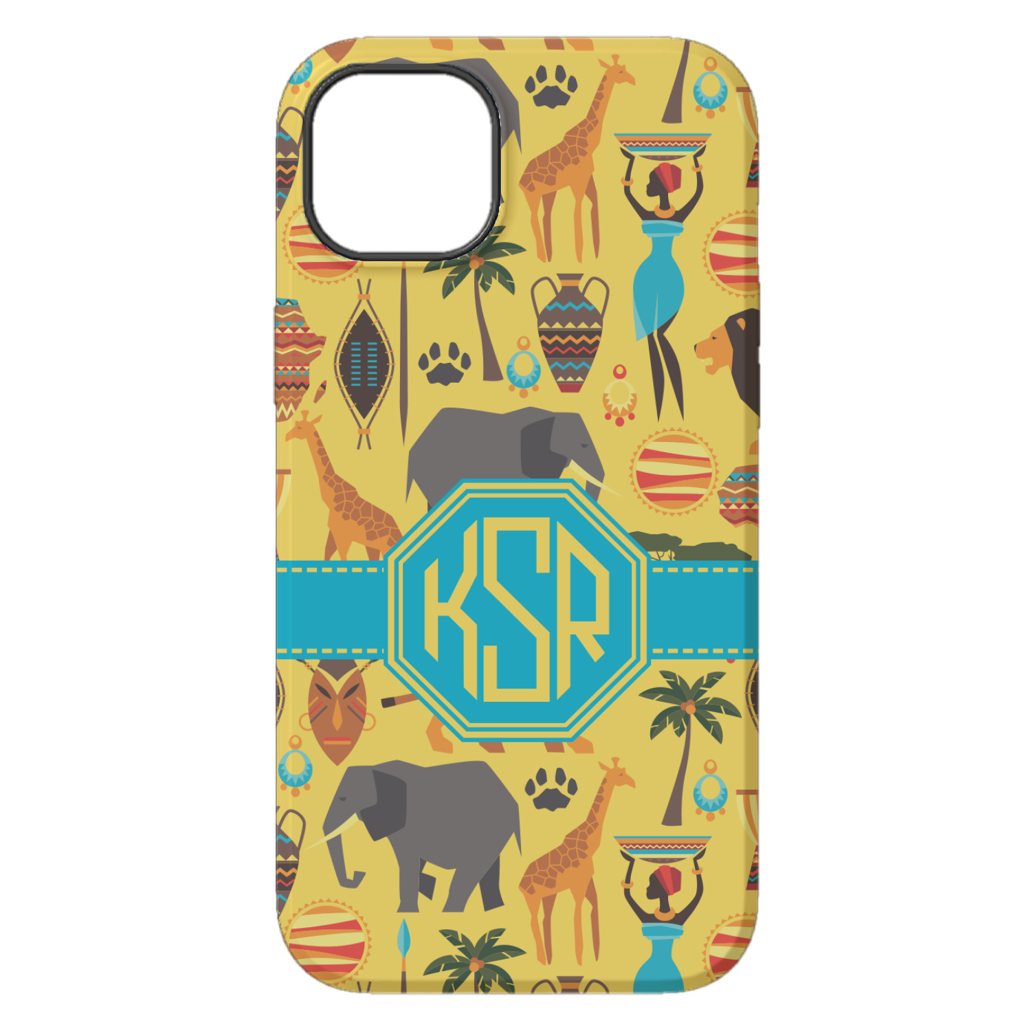 When you think of Africa, multiple things come to mind. Lions. Elephants. Giraffes. Intricate vases. This design encompasses everything you could imagine about the African Safari, all overlaid on a bright yellow background.