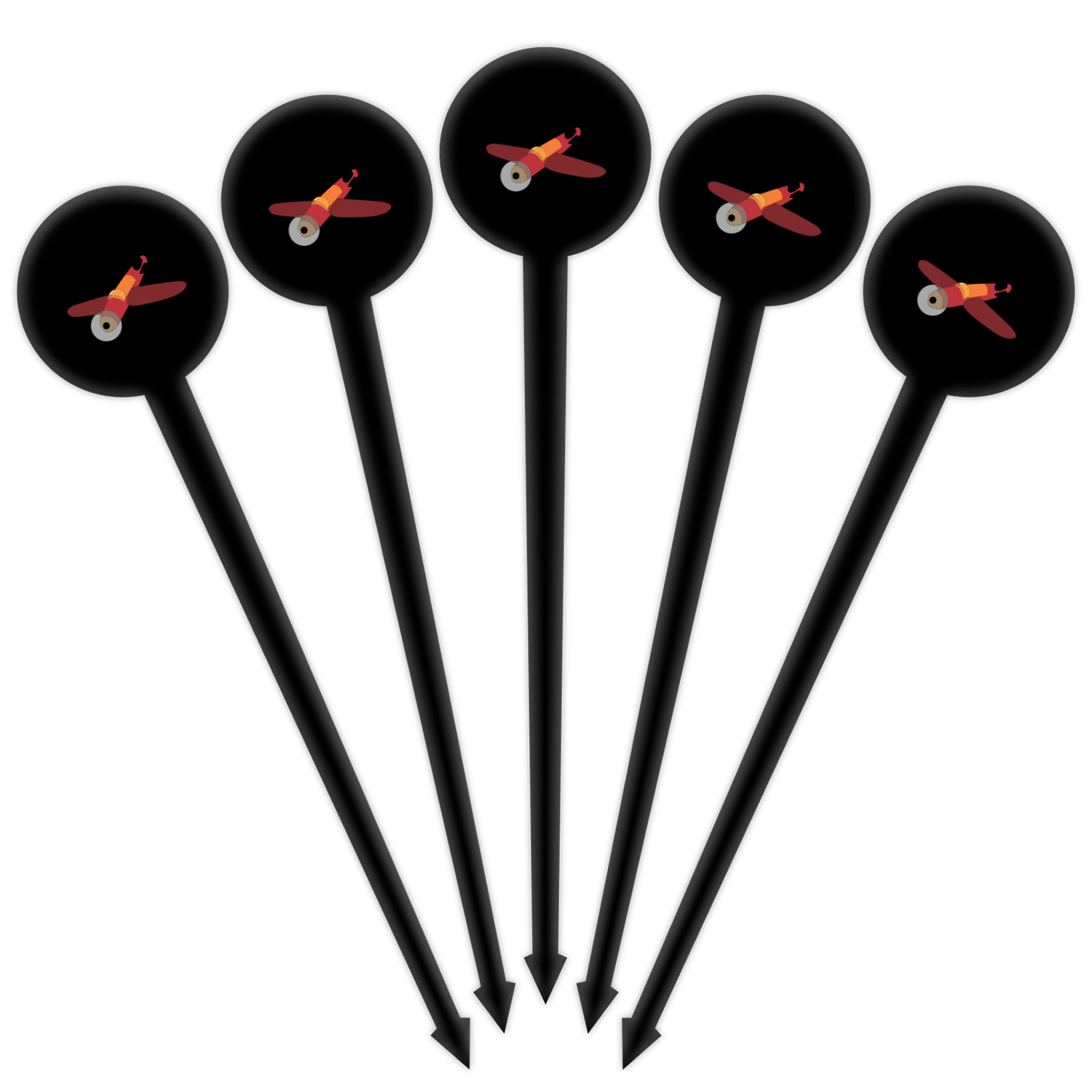 Planes Designs for 4" Round Plastic Food Picks - Black - Single-Sided