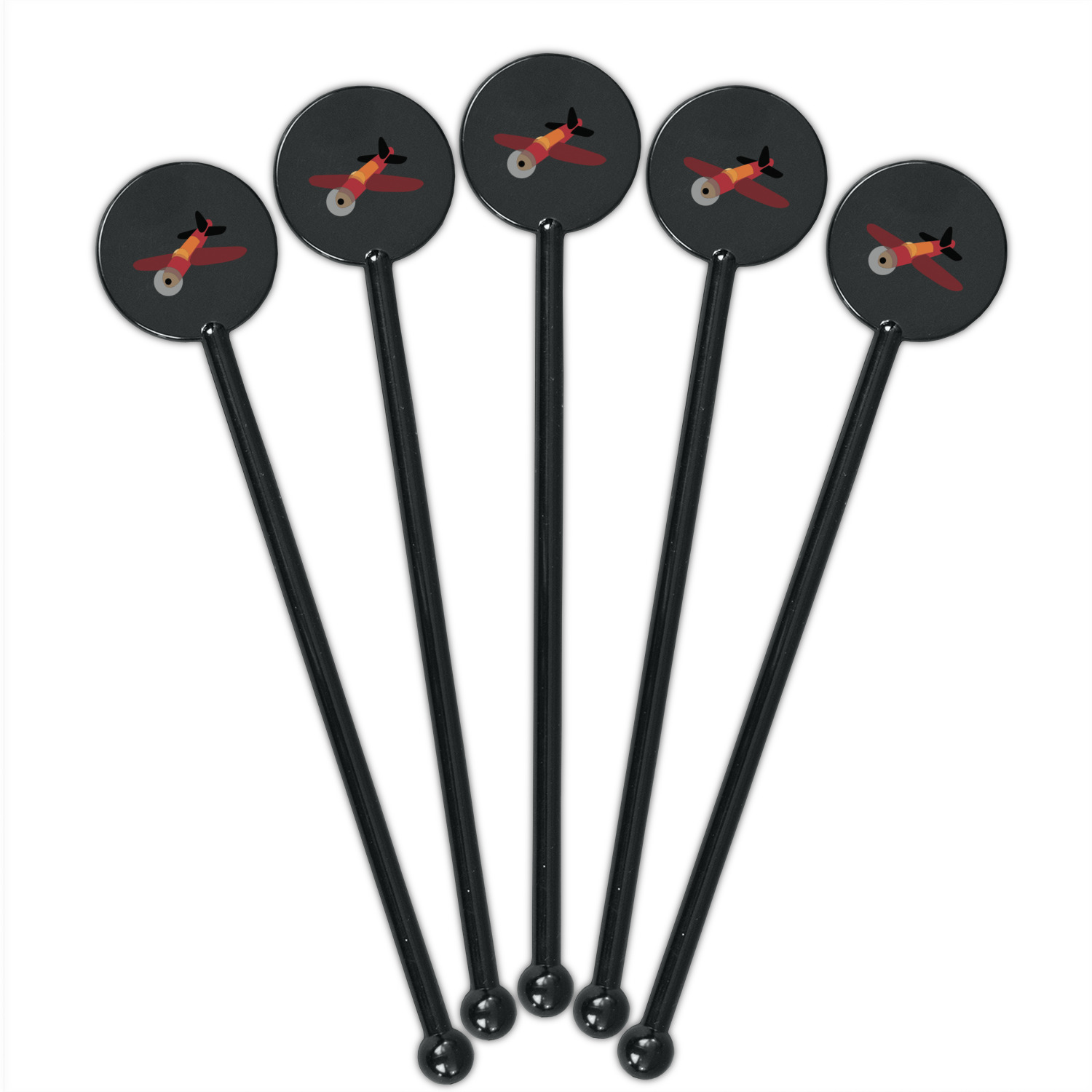Planes Designs for 5.5" Round Plastic Stir Sticks - Black - Single-Sided