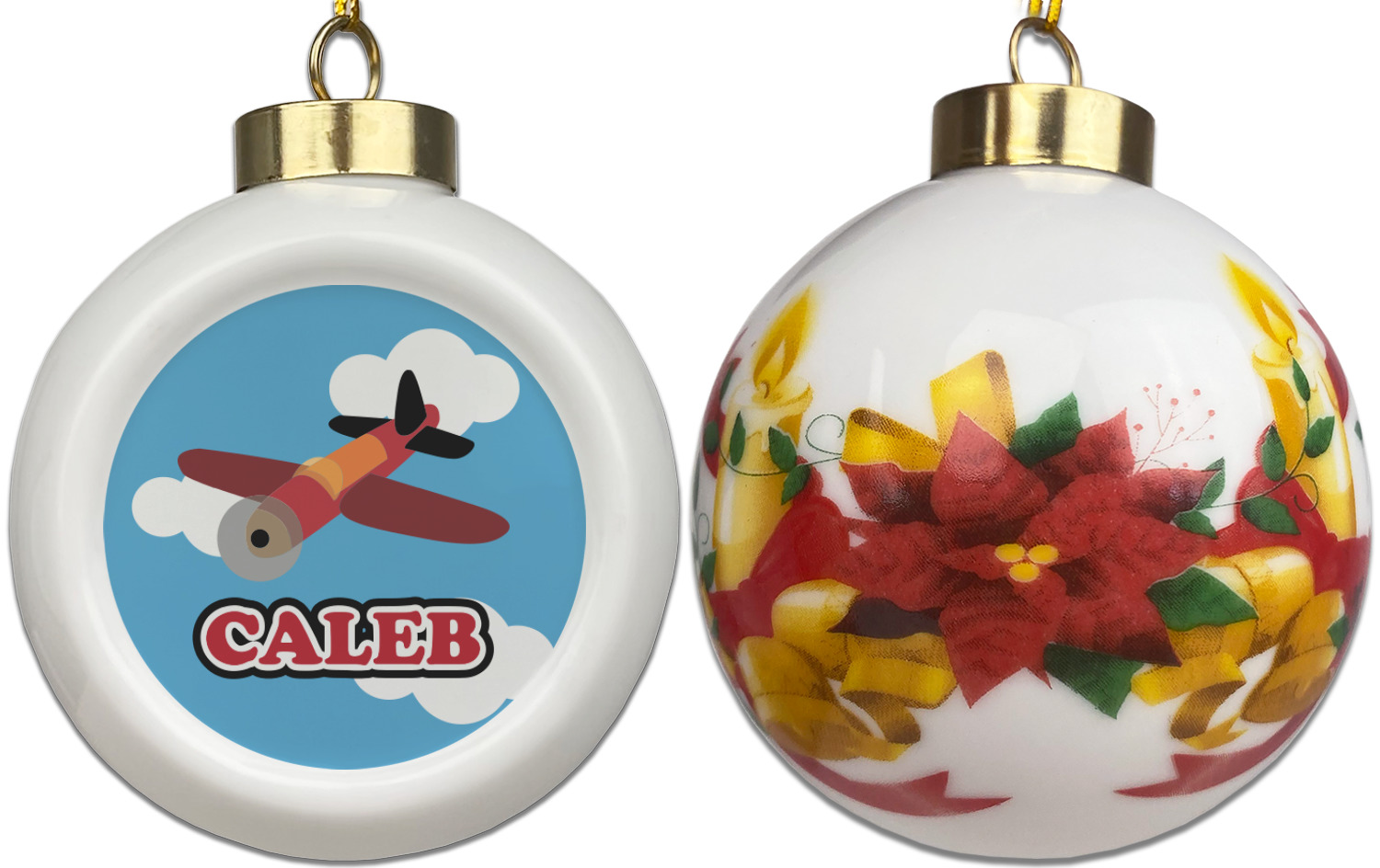 Our Christmas ornaments are a unique ceramic ball shape with a twist as it has a flat face to display your custom design! Select from one of our two design types - Christmas Tree or Poinsettia Garland - to adorn the curved back of your personal design. Each ornament measures 3H x 2.5W x 2D accompanied with a gold string accent for finishing touches to hang on your beautiful Christmas tree!